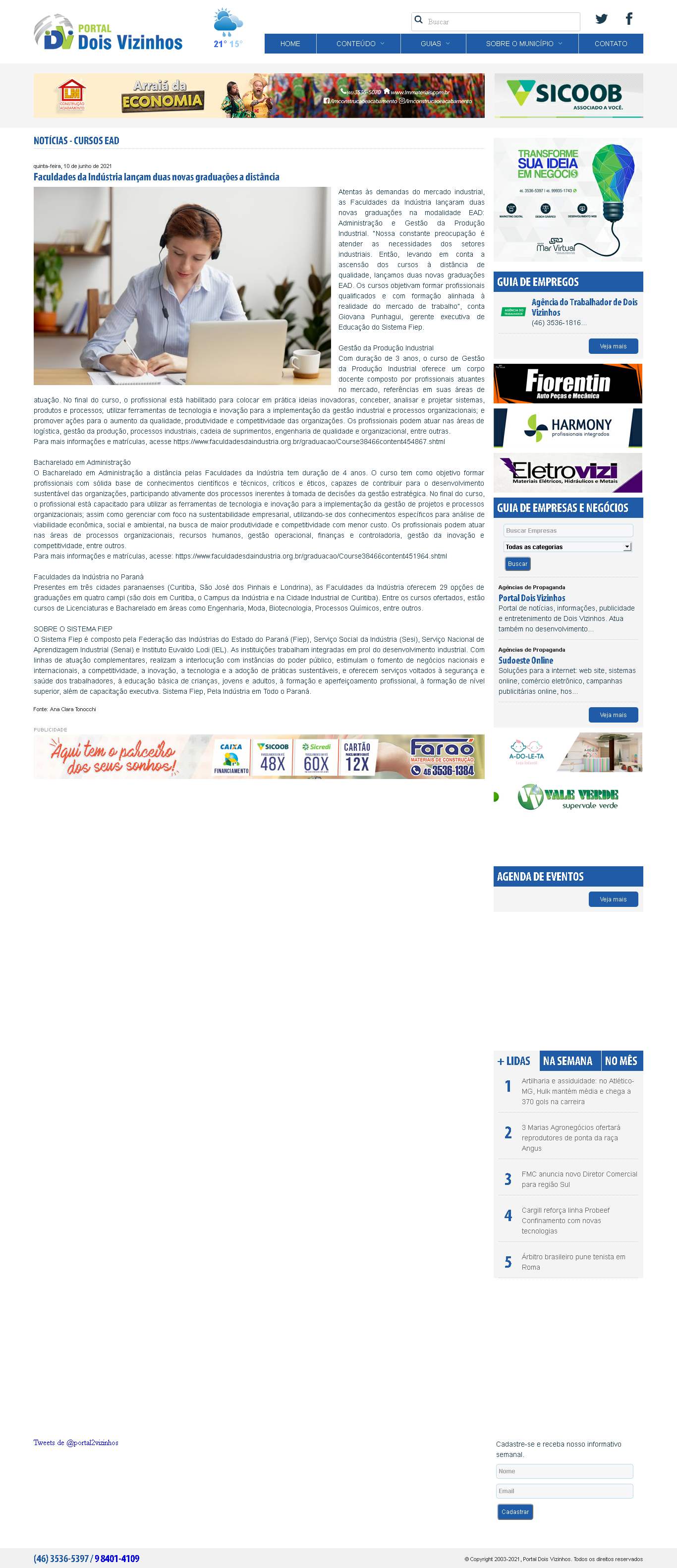 Faculdades da Indústria lançaram duas novas graduações na modalidade EAD: Administração e Gestão da Produção Industrial. “Nossa constante preocupação é atender as necessidades dos setores industriais. Então, levando em conta a ascensão dos cursos à distância de qualidade, lançamos duas novas graduações EAD. Os cursos objetivam formar profissionais qualificados e com formação alinhada à realidade do mercado de trabalho”, conta Giovana Punhagui, gerente executiva de Educação do Sistema Fiep.