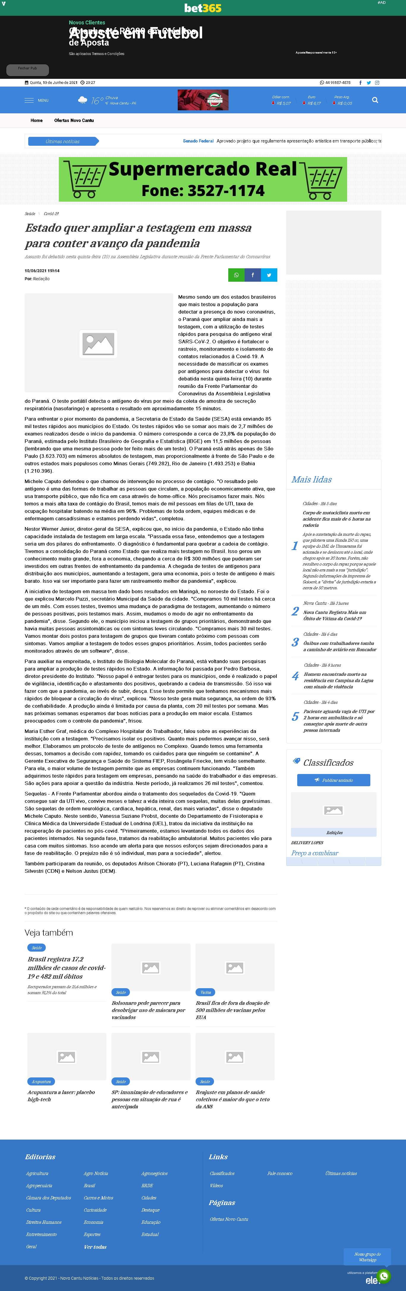 Para auxiliar na empreitada, o Instituto de Biologia Molecular do Paraná, está voltando suas pesquisas para ampliar a produção de testes rápidos no Estado. A informação foi passada por Pedro Barbosa, diretor-presidente do Instituto. "Nosso papel é entregar testes para os municípios, onde é realizado o papel de vigilância, identificação e afastamento dos positivos, quebrando a cadeia de transmissão. Só isso vai fazer com que a pandemia, ao invés de subir, desça. Esse teste permite que tenhamos mecanismos mais rápidos de bloquear a circulação do vírus", explicou. "Nosso teste gera muita segurança, na ordem de 93% de confiabilidade. A produção ainda é limitada por causa da planta, com 20 mil testes por semana. Mas nas próximas semanas esperamos dar boas notícias para a produção em maior escala. Estamos preocupados com o controle da pandemia", frisou.