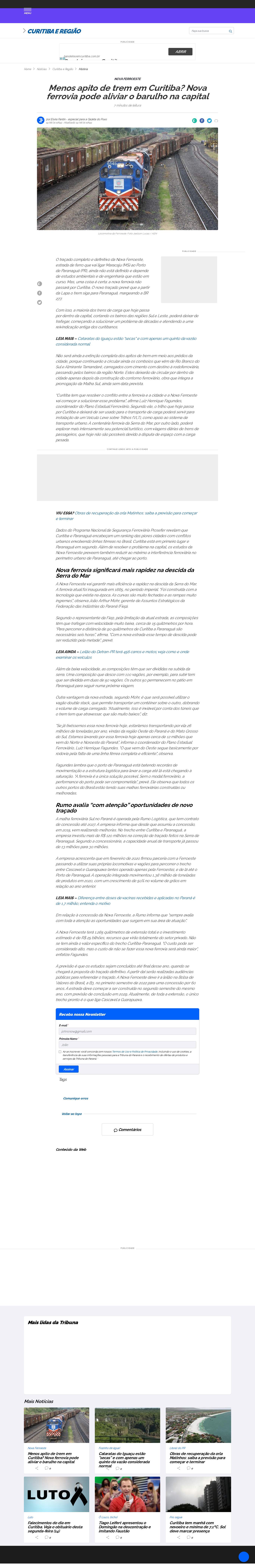 “Curitiba tem que resolver o conflito entre a ferrovia e a cidade e a Nova Ferroeste vai começar a solucionar esse problema”, afirma Luiz Henrique Fagundes, coordenador do Plano Estadual Ferroviário. Segundo ele, o trilho que hoje passa por Curitiba e deixará de ser usado para o transporte de carga poderá servir para instalação de um Veículo Leve sobre Trilhos (VLT), como apoio ao sistema de transporte urbano. A centenária ferrovia da Serra do Mar, por outro lado, poderá explorar mais intensamente seu potencial turístico, com viagens diárias de trens de passageiros, que hoje não são possíveis devido à disputa de espaço com a carga pesada.