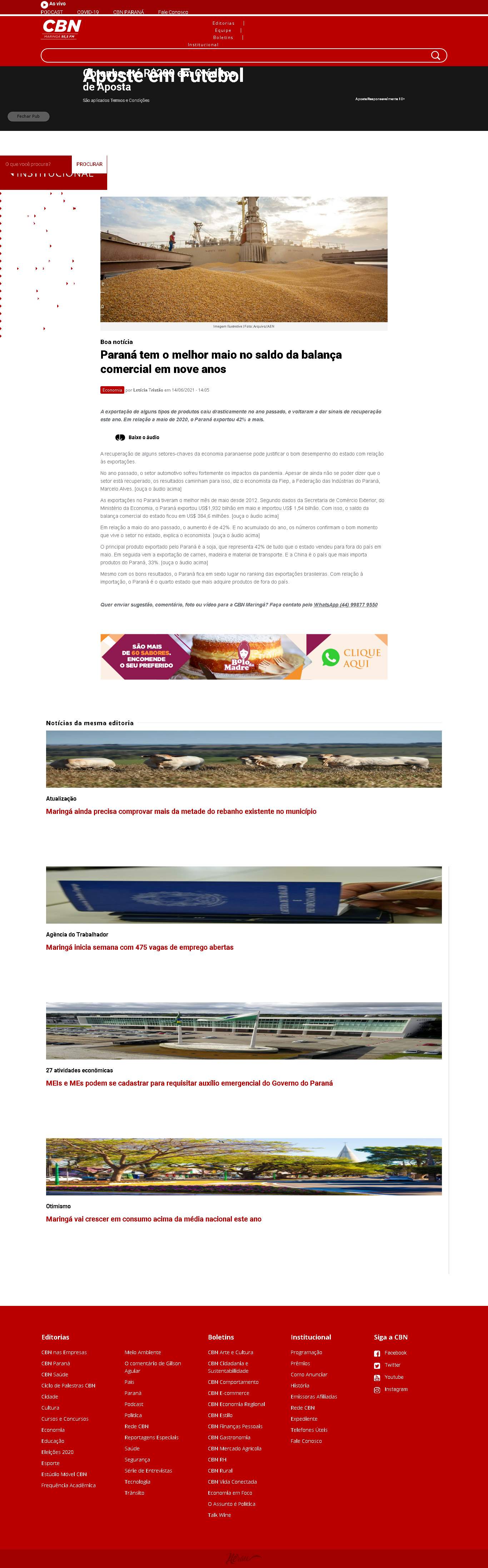 Paraná exportou US$1,932 bilhão em maio e importou US$ 1,54 bilhão. Com isso, o saldo da balança comercial do estado ficou em US$ 384,6 milhões. [ouça o áudio acima]