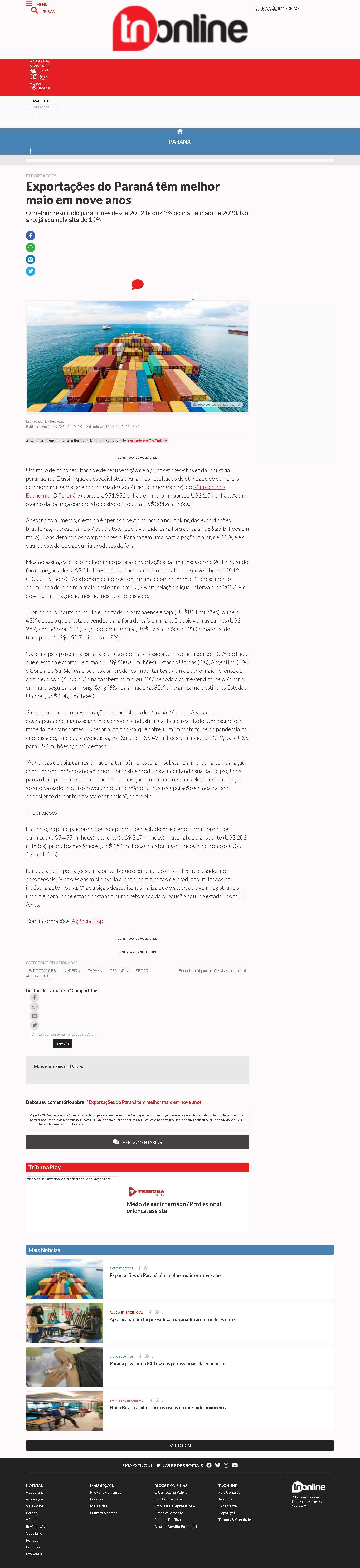 Um maio de bons resultados e de recuperação de alguns setores-chaves da indústria paranaense. É assim que os especialistas avaliam os resultados da atividade de comércio exterior divulgados pela Secretaria de Comércio Exterior (Secex), do Ministério da Economia. O