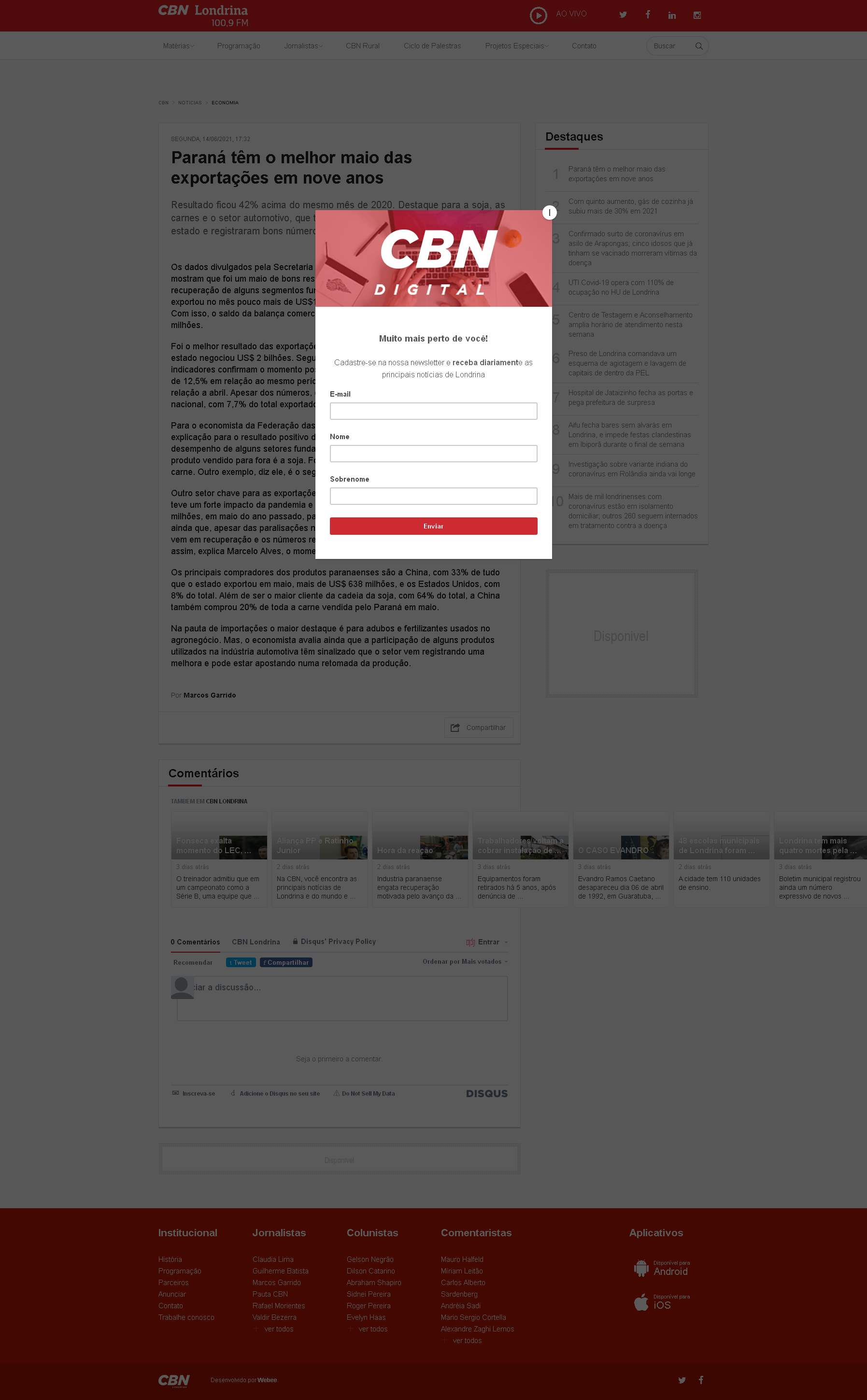 Outro setor chave para as exportações paranaenses é o automotivo, que durante 2020 teve um forte impacto da pandemia e agora triplicou as vendas, saindo de US$ 49 milhões, em maio do ano passado, para US$ 152 milhões. O economista da