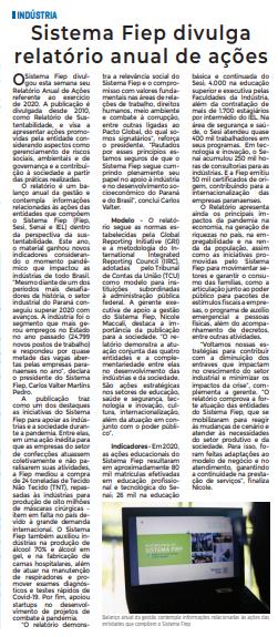 O Sistema Fiep divulgou esta semana seu Relatório Anual de Ações referente ao exercício de 2020. A publicação é divulgada desde 2010, como Relatório de Sustentabilidade, e visa a apresentar ações promovidas pela entidade considerando aspectos como gerenciamento de riscos sociais, ambientais e de governança e a contribuição à sociedade a partir das práticas realizadas. O relatório é um balanço anual da gestão e contempla informações relacionadas às ações das entidades que compõem o Sistema Fiep (Fiep,