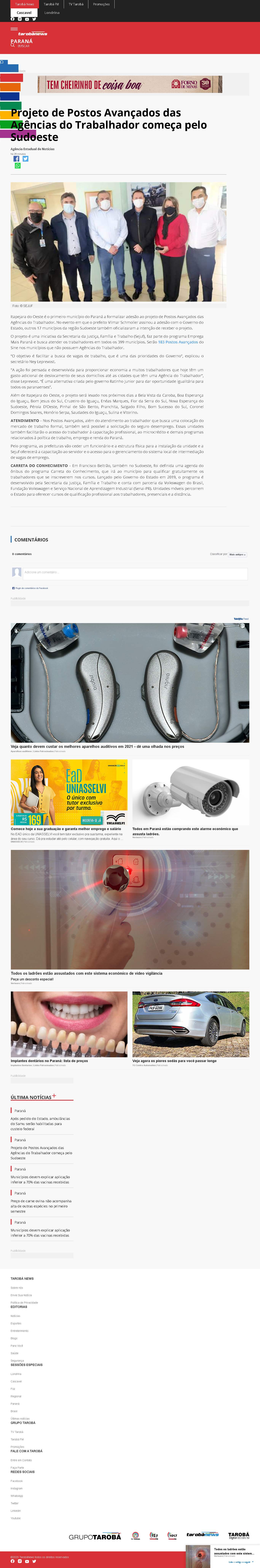 Itapejara do Oeste é o primeiro município do Paraná a formalizar adesão ao projeto de Postos Avançados das Agências do Trabalhador. No evento em que o prefeito Vilmar Schmoller assinou a adesão com o Governo do Estado, outros 17 municípios da região Sudoeste também oficializaram a intenção de receber o projeto.