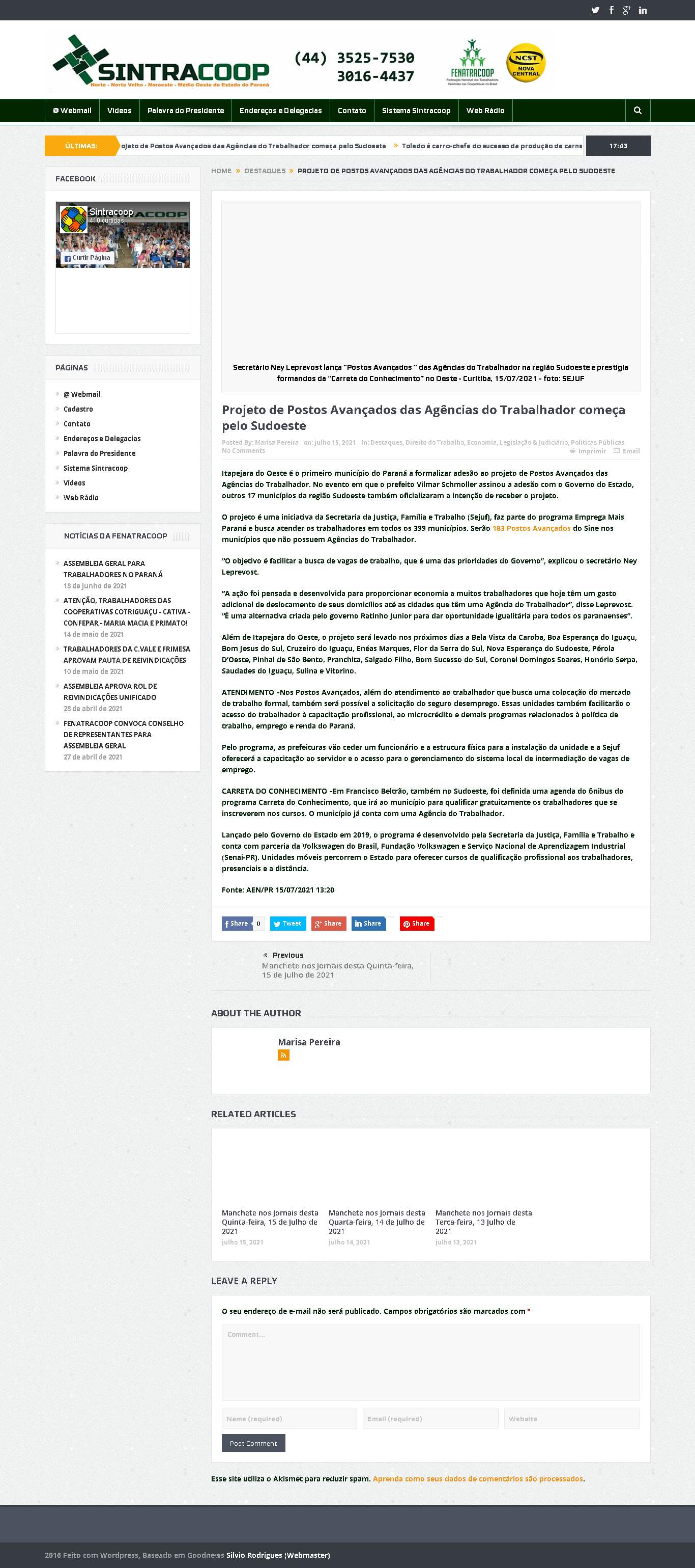 “O objetivo é facilitar a busca de vagas de trabalho, que é uma das prioridades do Governo”, explicou o secretário Ney Leprevost.
