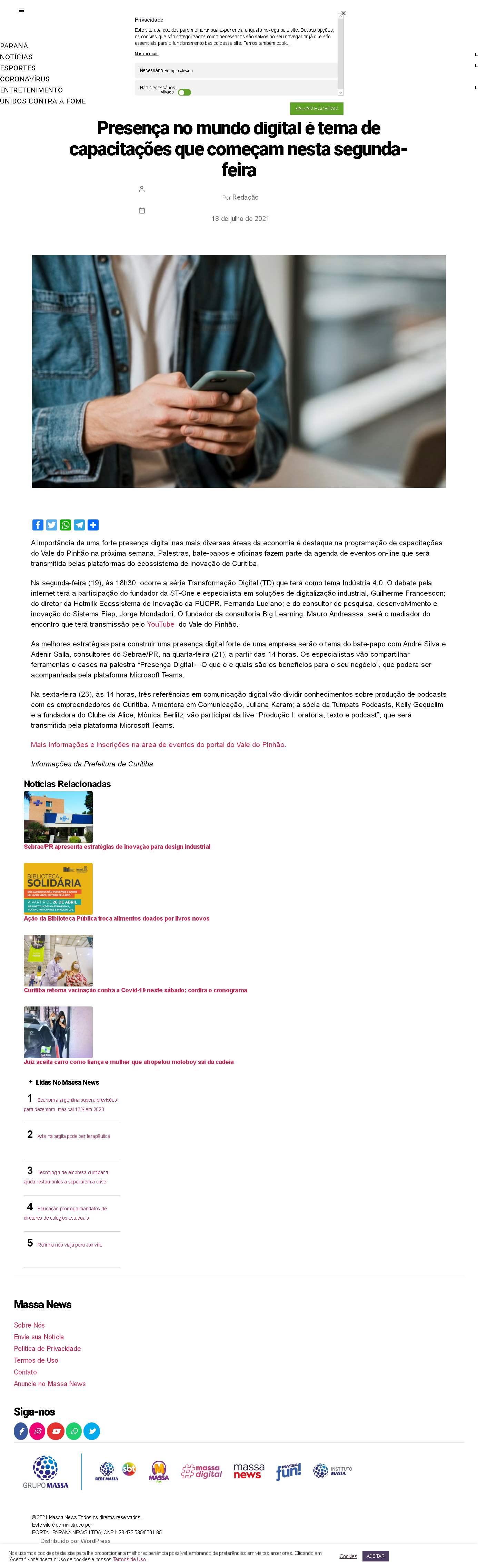 A importância de uma forte presença digital nas mais diversas áreas da economia é destaque na programação de capacitações do Vale do Pinhão na próxima semana. Palestras, bate-papos e oficinas fazem parte da agenda de eventos on-line que será transmitida pelas plataformas do ecossistema de inovação de Curitiba.