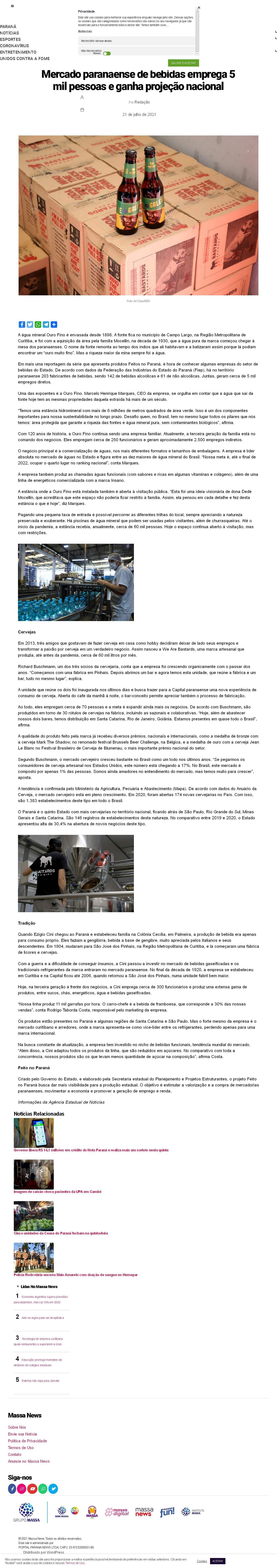 (Fiep), há no território paranaense 203 fabricantes de bebidas, sendo 142 de bebidas alcoólicas e 61 de não alcoólicas. Juntas, geram cerca de 5 mil empregos diretos.