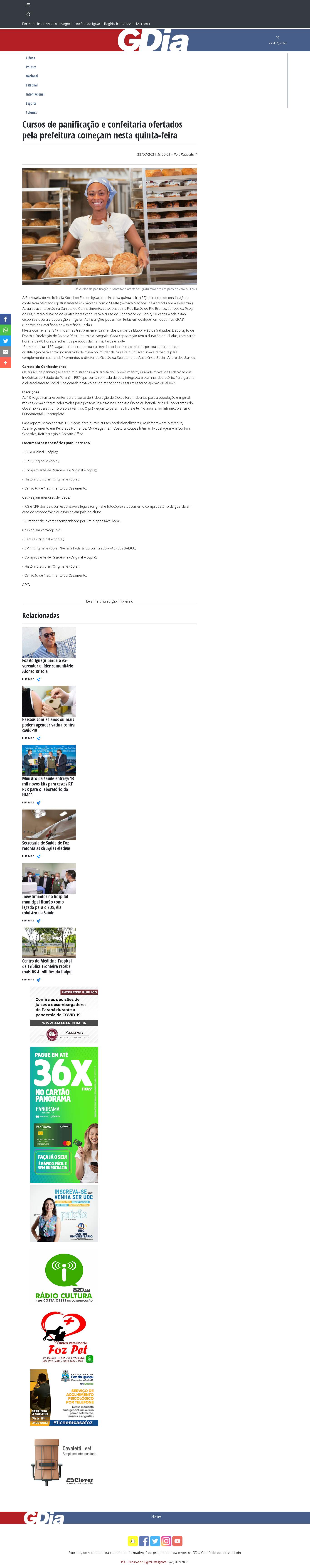 A Secretaria de Assistência Social de Foz do Iguaçu inicia nesta quinta-feira (22) os cursos de panificação e confeitaria ofertados gratuitamente em parceria com o SENAI (