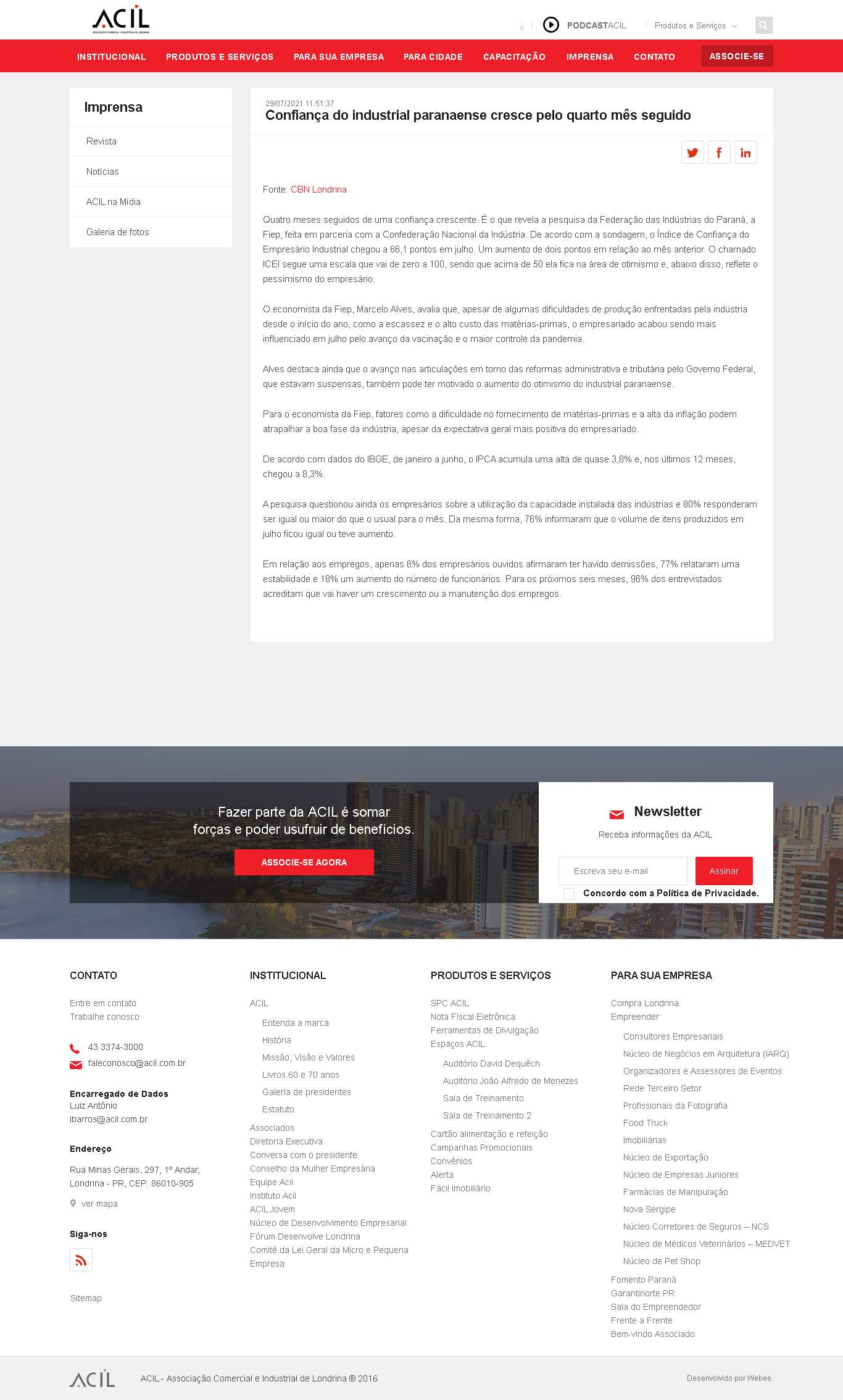 Fiep, feita em parceria com a Confederação Nacional da Indústria. De acordo com a sondagem, o Índice de Confiança do Empresário Industrial chegou a 66,1 pontos em julho. Um aumento de dois pontos em relação ao mês anterior. O chamado ICEI segue uma escala que vai de zero a 100, sendo que acima de 50 ela fica na área de otimismo e, abaixo disso, reflete o pessimismo do empresário.