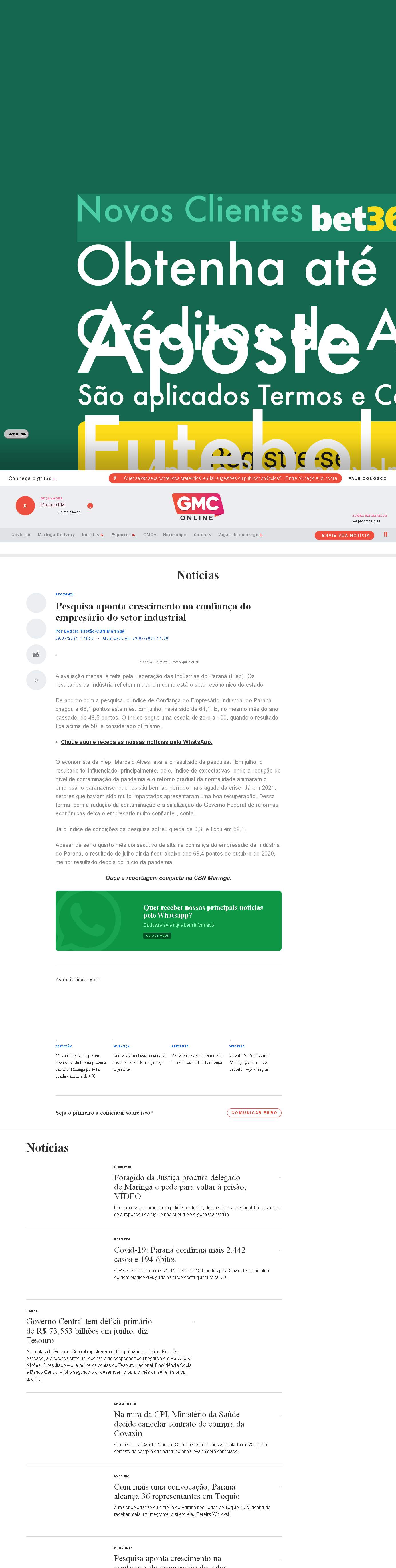 Paraná chegou a 66,1 pontos este mês. Em junho, havia sido de 64,1. E, no mesmo mês do ano passado, de 48,5 pontos. O índice segue uma escala de zero a 100, quando o resultado fica acima de 50, é considerado otimismo.