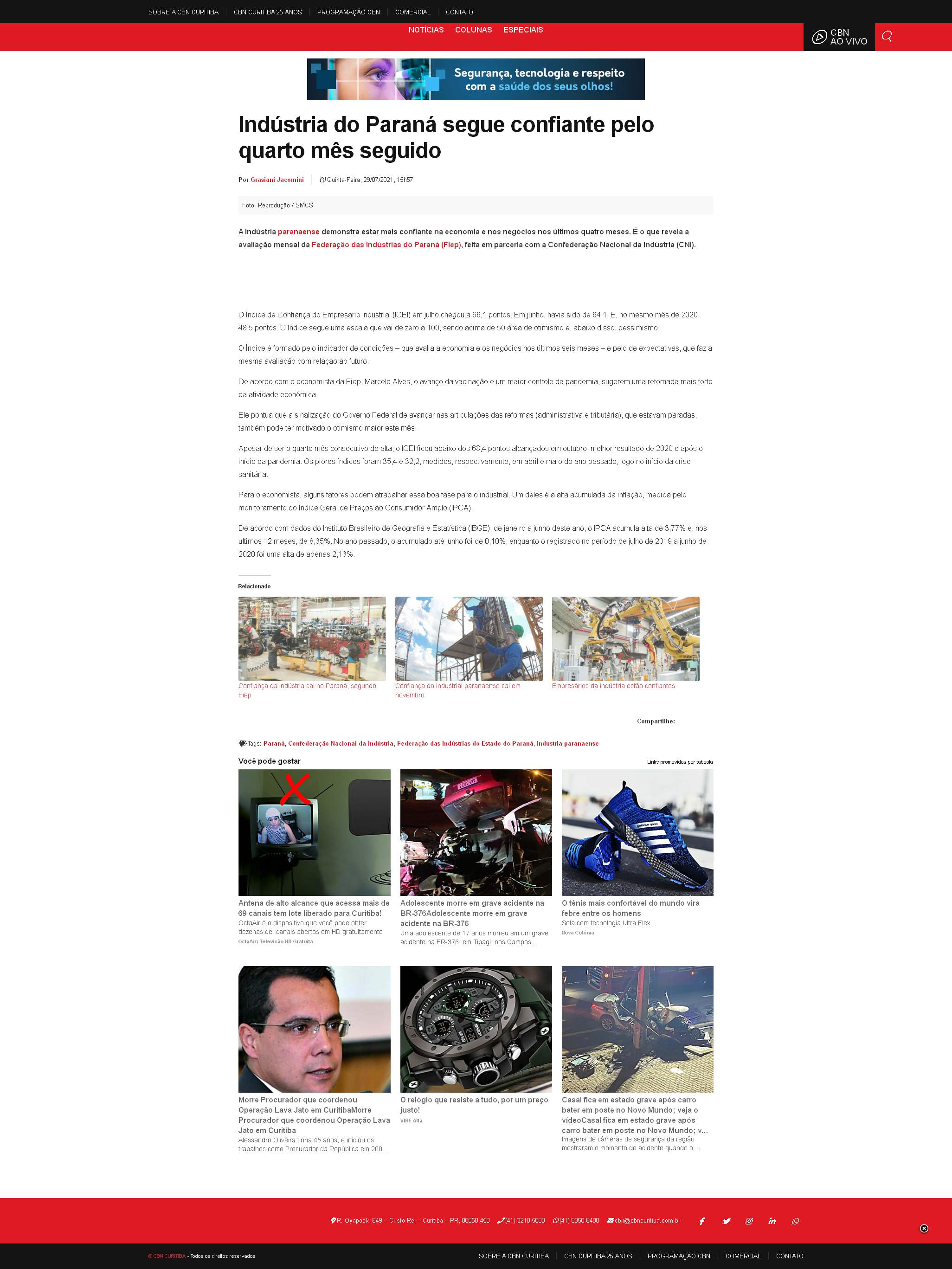 O Índice de Confiança do Empresário Industrial (ICEI) em julho chegou a 66,1 pontos. Em junho, havia sido de 64,1. E, no mesmo mês de 2020, 48,5 pontos. O índice segue uma escala que vai de zero a 100, sendo acima de 50 área de otimismo e, abaixo disso, pessimismo.