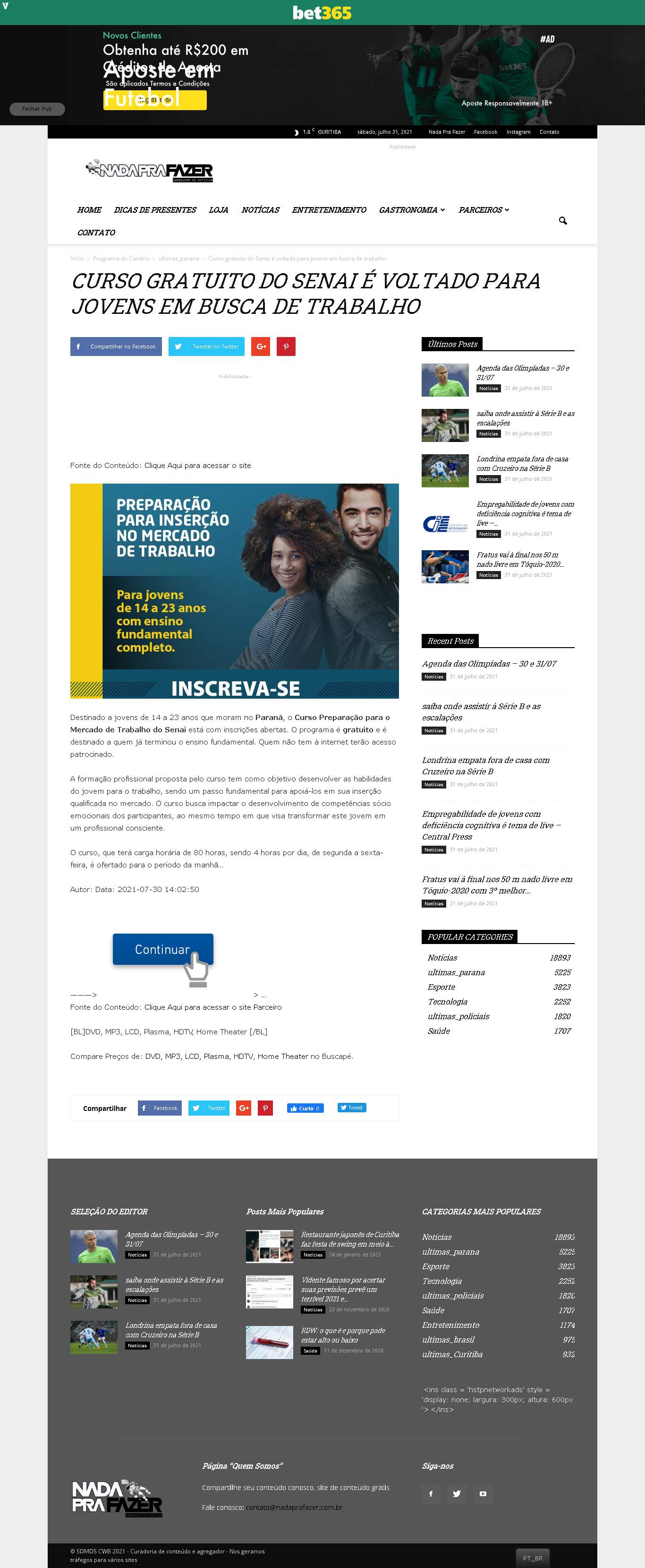 Destinado a jovens de 14 a 23 anos que moram no Paraná, o Curso Preparação para o Mercado de Trabalho do Senai está com inscrições abertas. O programa é gratuito e é destinado a quem já terminou o ensino fundamental. Quem não tem à internet terão acesso patrocinado.