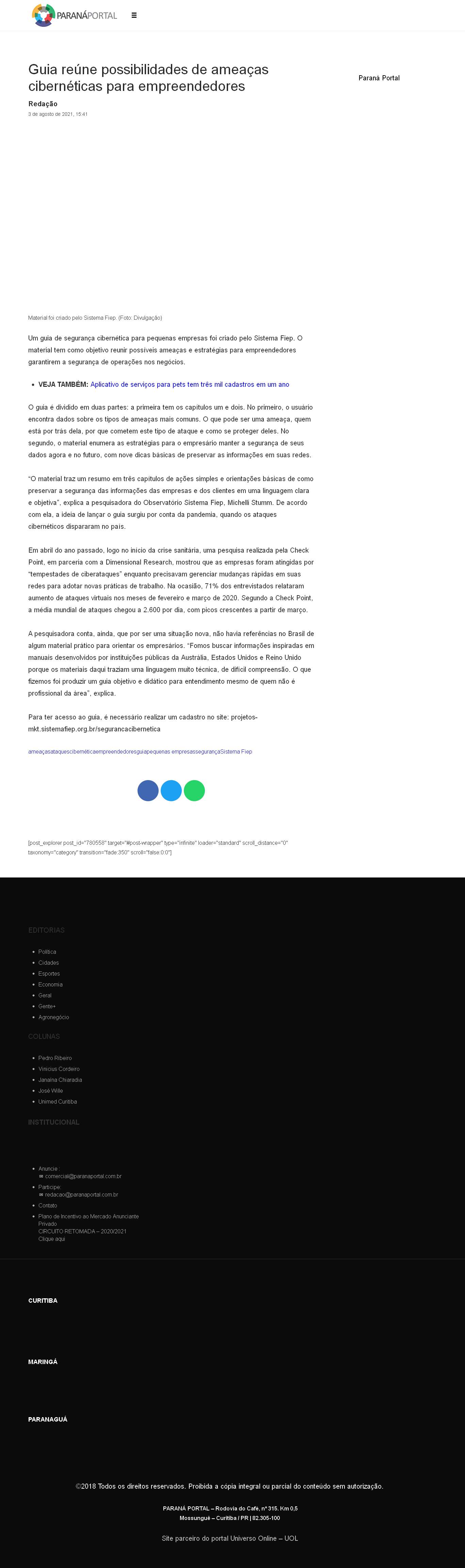 Para ter acesso ao guia, é necessário realizar um cadastro no site: projetos-mkt.sistemafiep.org.br/segurancacibernetica