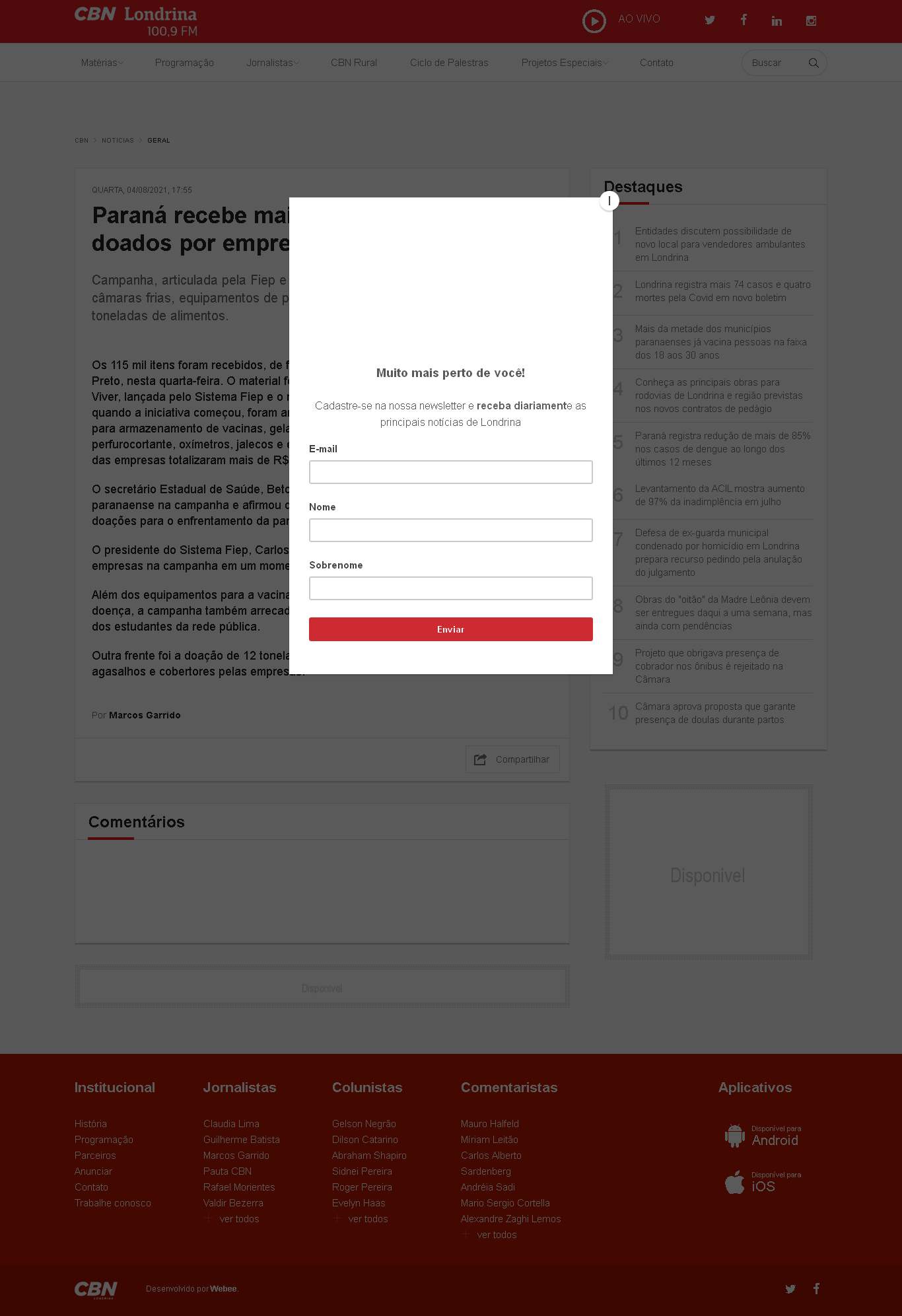 Sistema Fiep e o movimento Unidos pela Vacina. Desde maio, quando a iniciativa começou, foram arrecadados equipamentos como câmaras frias para armazenamento de vacinas, geladeiras, caixas térmicas, caixas para material perfurocortante, oxímetros, jalecos e equipamentos de proteção individual. As doações das empresas totalizaram mais de R$ 1 milhão.