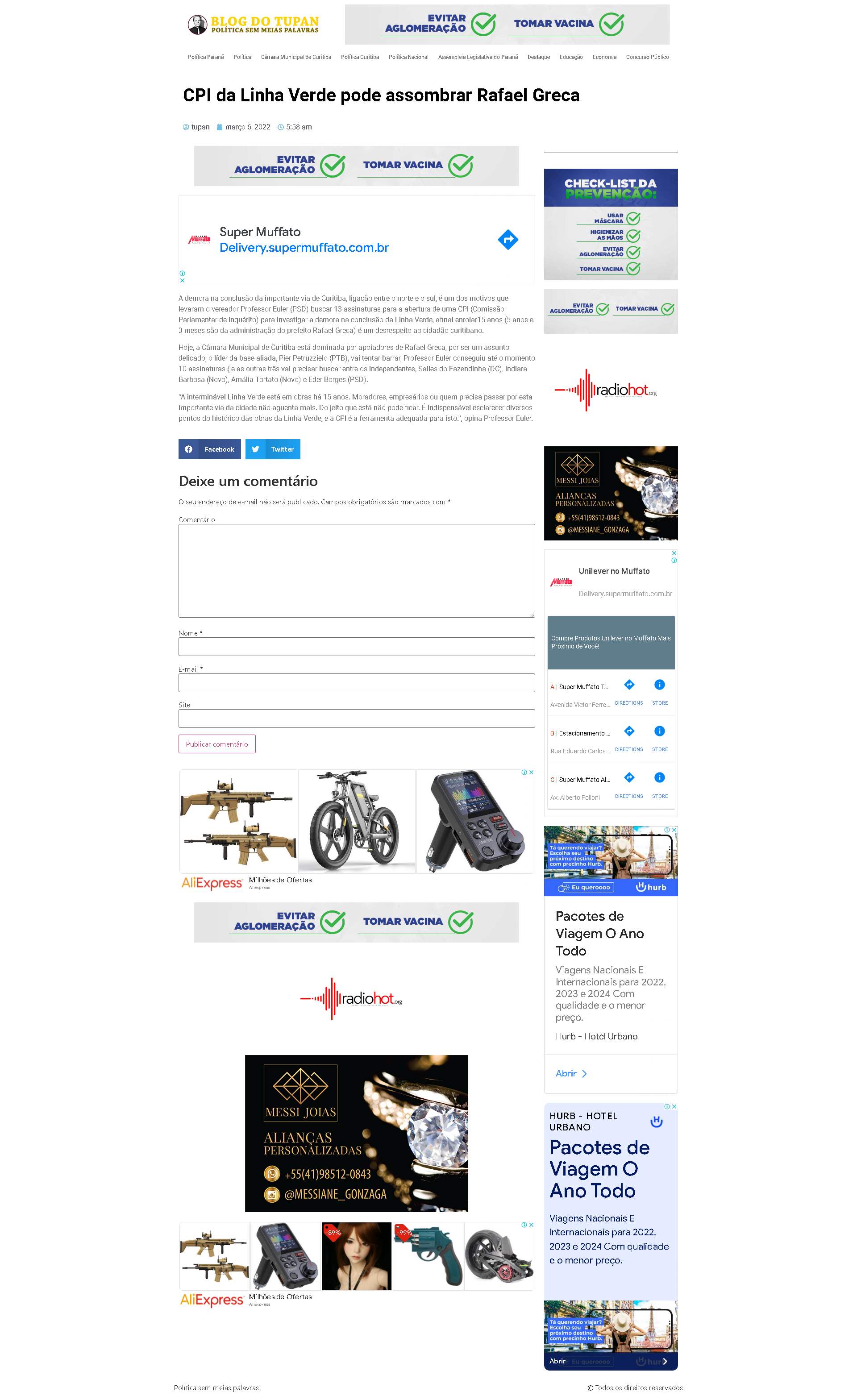 vereador Professor Euler (PSD) buscar 13 assinaturas para a abertura de uma CPI (Comissão Parlamentar de Inquérito) para investigar a demora na conclusão da Linha Verde, afinal enrolar15 anos (5 anos e 3 meses são da administração do prefeito Rafael Greca) é um desrespeito ao cidadão curitibano.