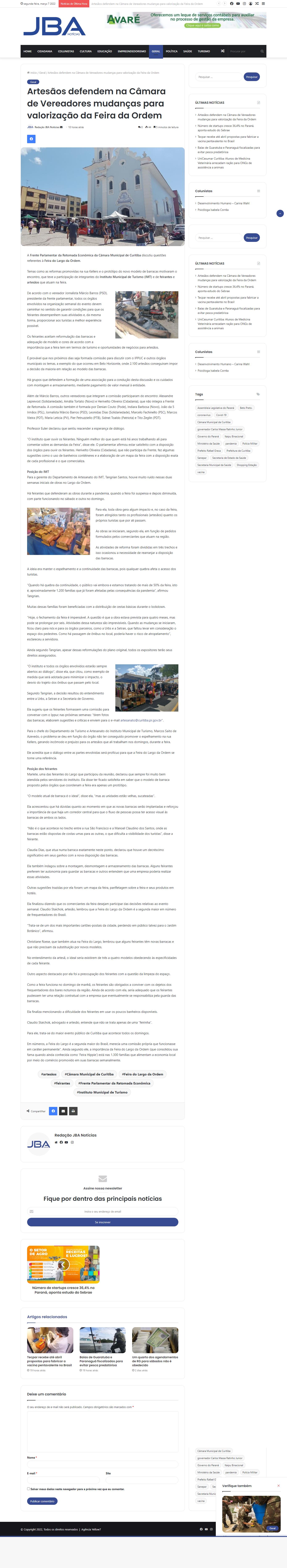Câmara Municipal de Curitiba discutiu questões referentes à Feira do Largo da Ordem.