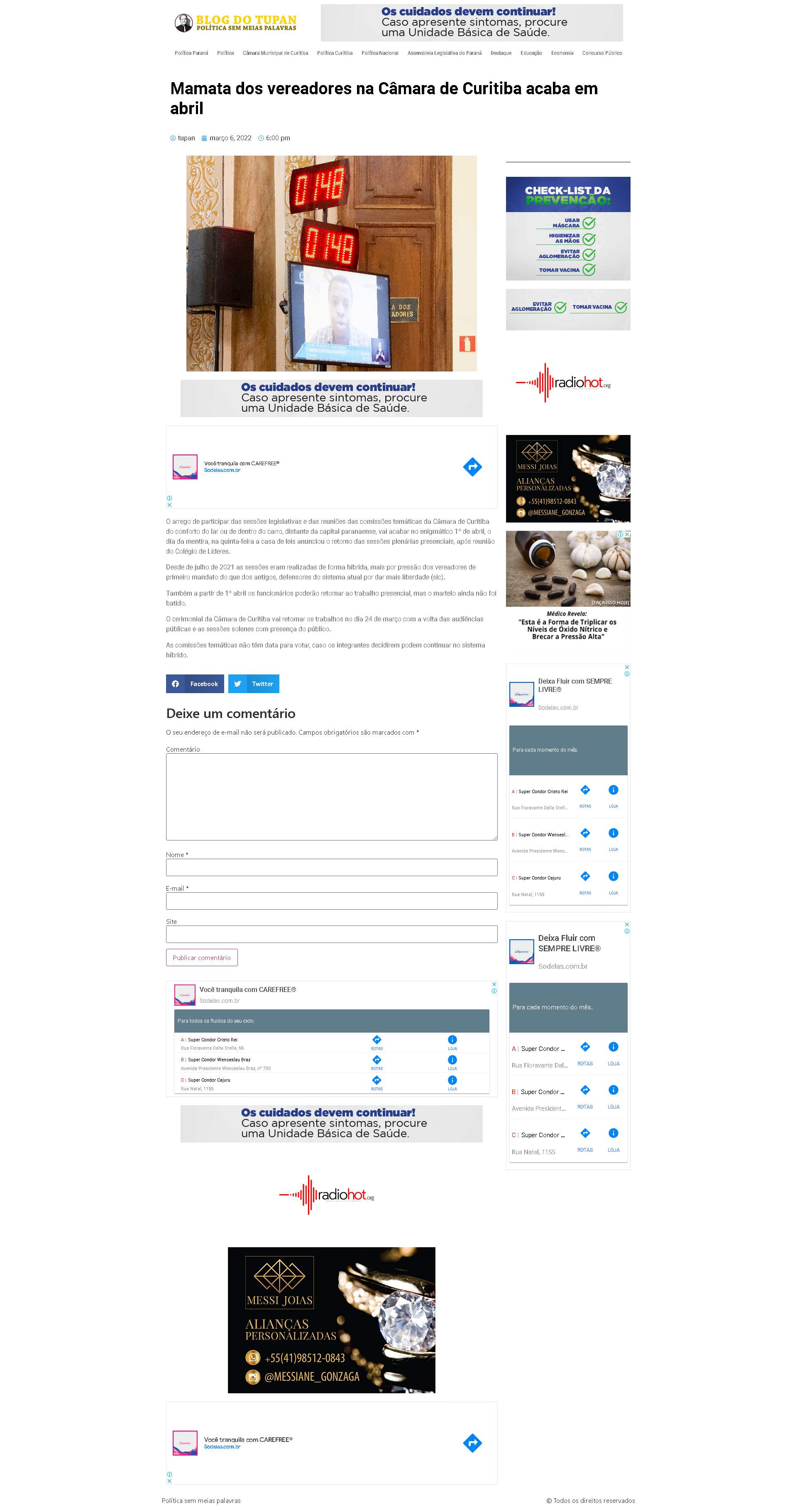 Câmara de Curitiba do conforto do lar ou de dentro do carro, distante da capital paranaense, vai acabar no enigmático 1º de abril, o dia da mentira, na quinta-feira a casa de leis anunciou o retorno das sessões plenárias presenciais, após reunião do Colégio de Líderes.