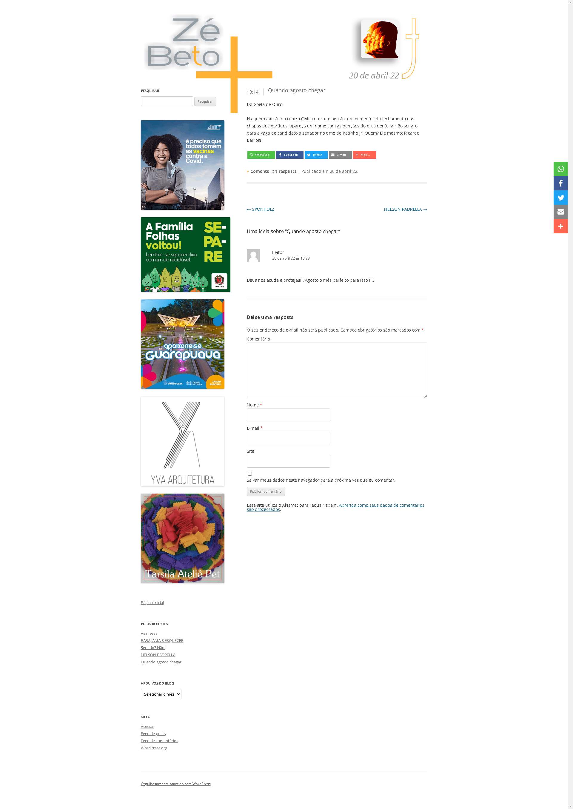 The post Quando agosto chegar first appeared on Blog do Zé Beto.