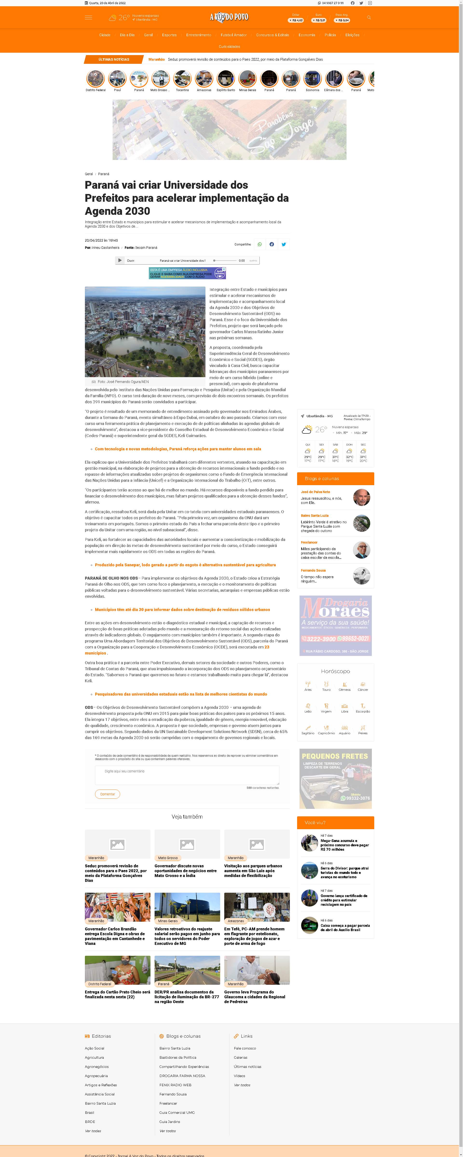 Estado e municípios para estimular e acelerar mecanismos de implementação e acompanhamento local da Agenda 2030 e dos Objetivos de Desenvolvimento Sustentável (ODS) no Paraná. Esse é o foco da Universidade dos Prefeitos, projeto que será lançado pelo