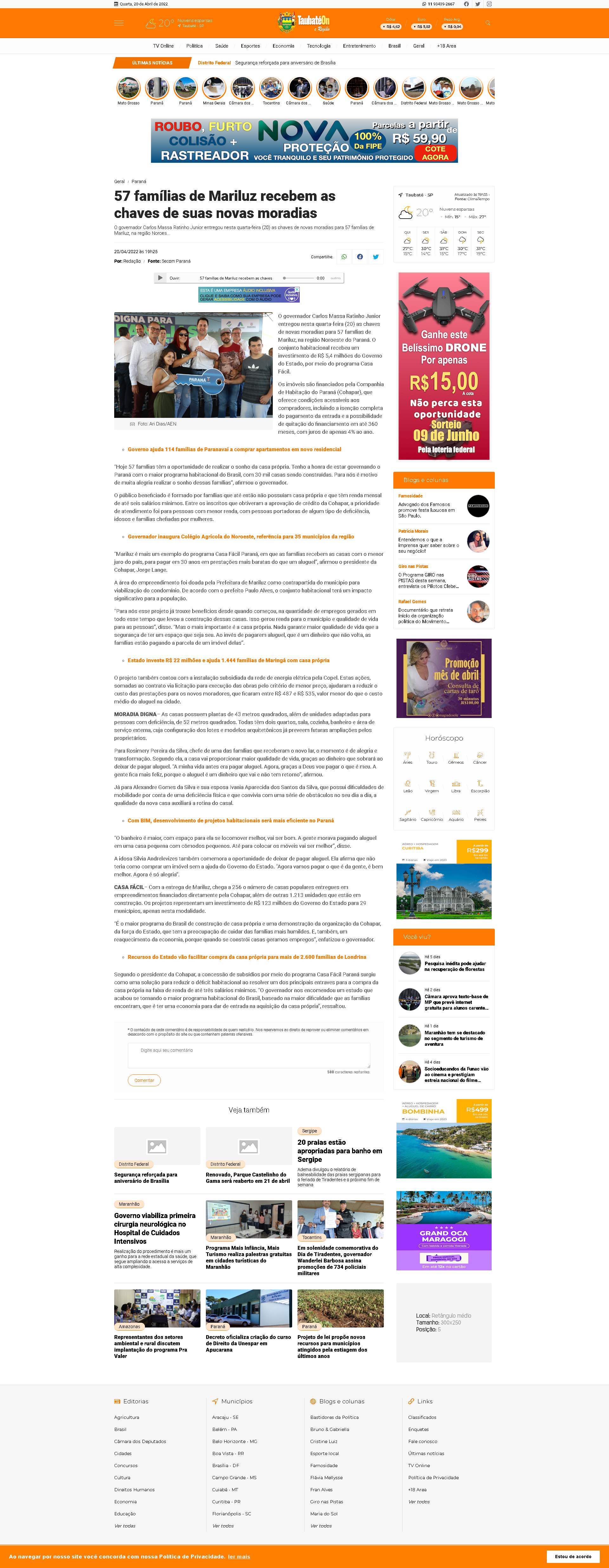 “Mariluz é mais um exemplo do programa Casa Fácil Paraná, em que as famílias recebem as casas com o menor juro do país, para pagar em 30 anos em prestações mais baratas do que um aluguel”, afirmou o presidente da