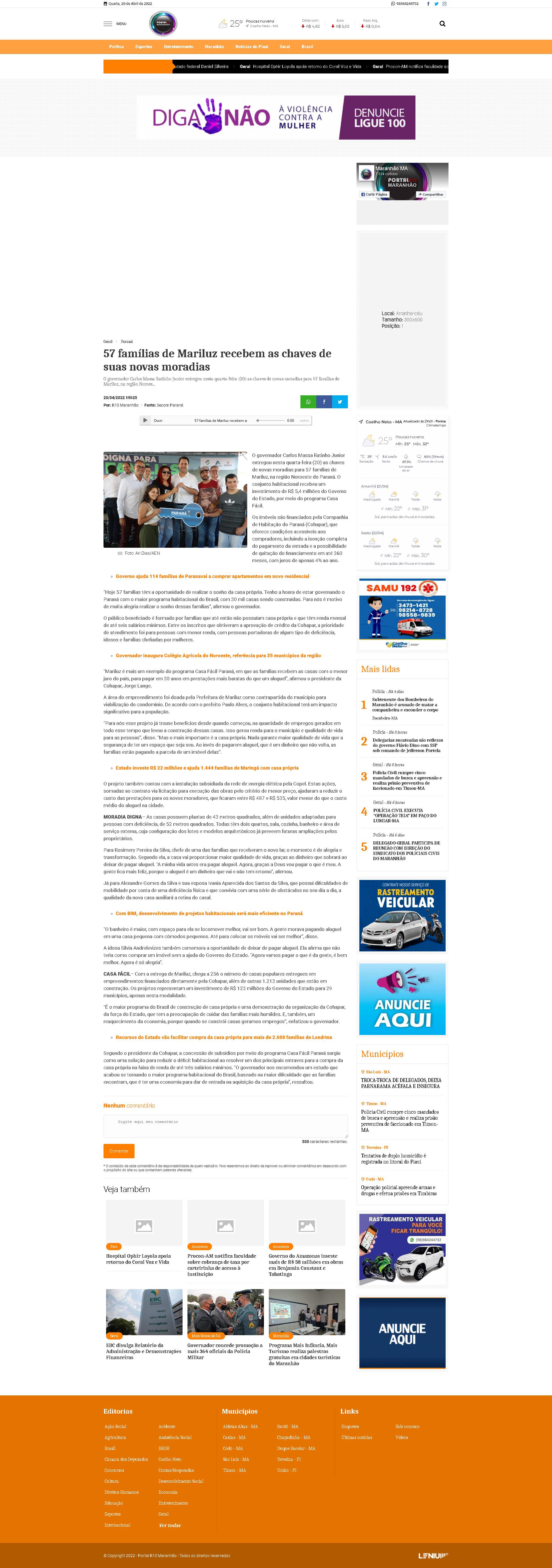 PORTAL R10 MARANHÃO: A NOTÍCIA LEVADA A SÉRIO (MA) | GERAL | 20/04/2022
