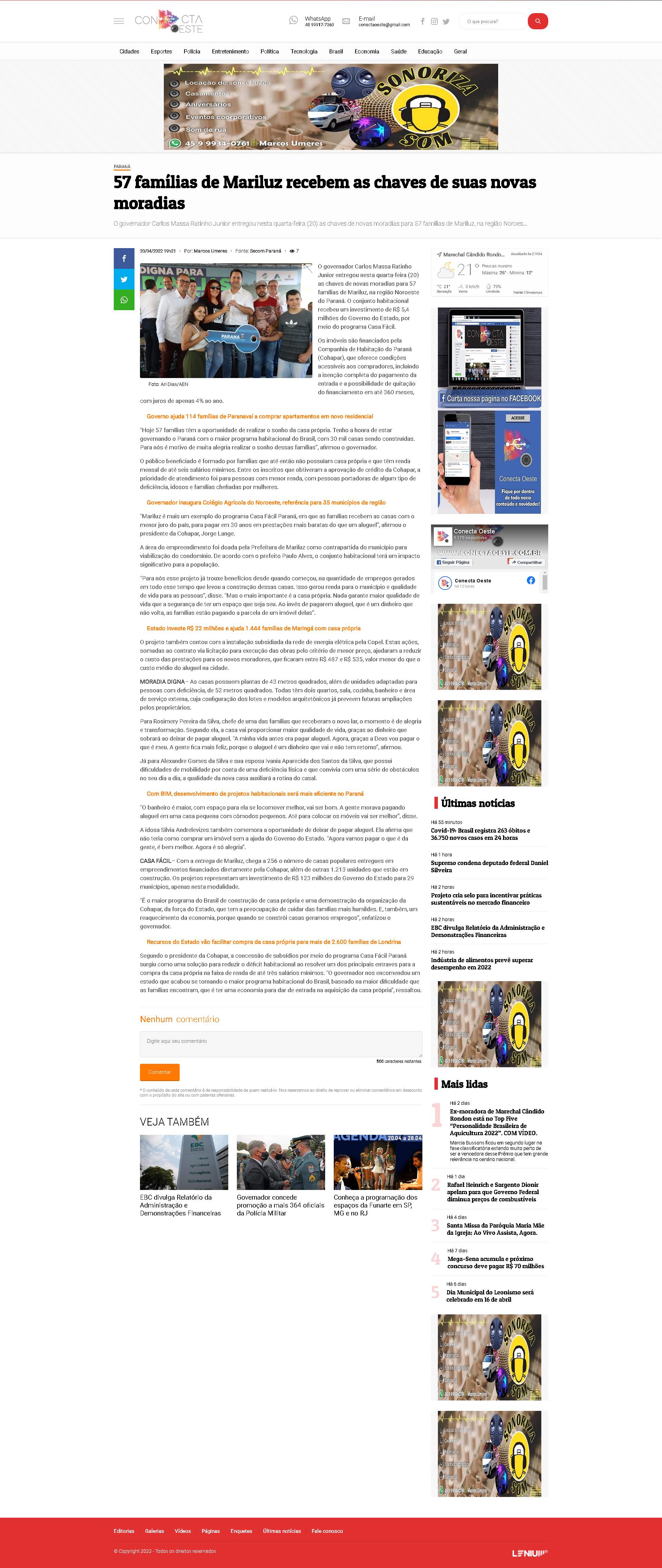 Cohapar, a prioridade de atendimento foi para pessoas com menor renda, com pessoas portadoras de algum tipo de deficiência, idosos e famílias chefiadas por mulheres. Governador inaugura Colégio Agrícola do Noroeste, referência para 35 municípios da região “Mariluz é mais um exemplo do programa Casa Fácil
