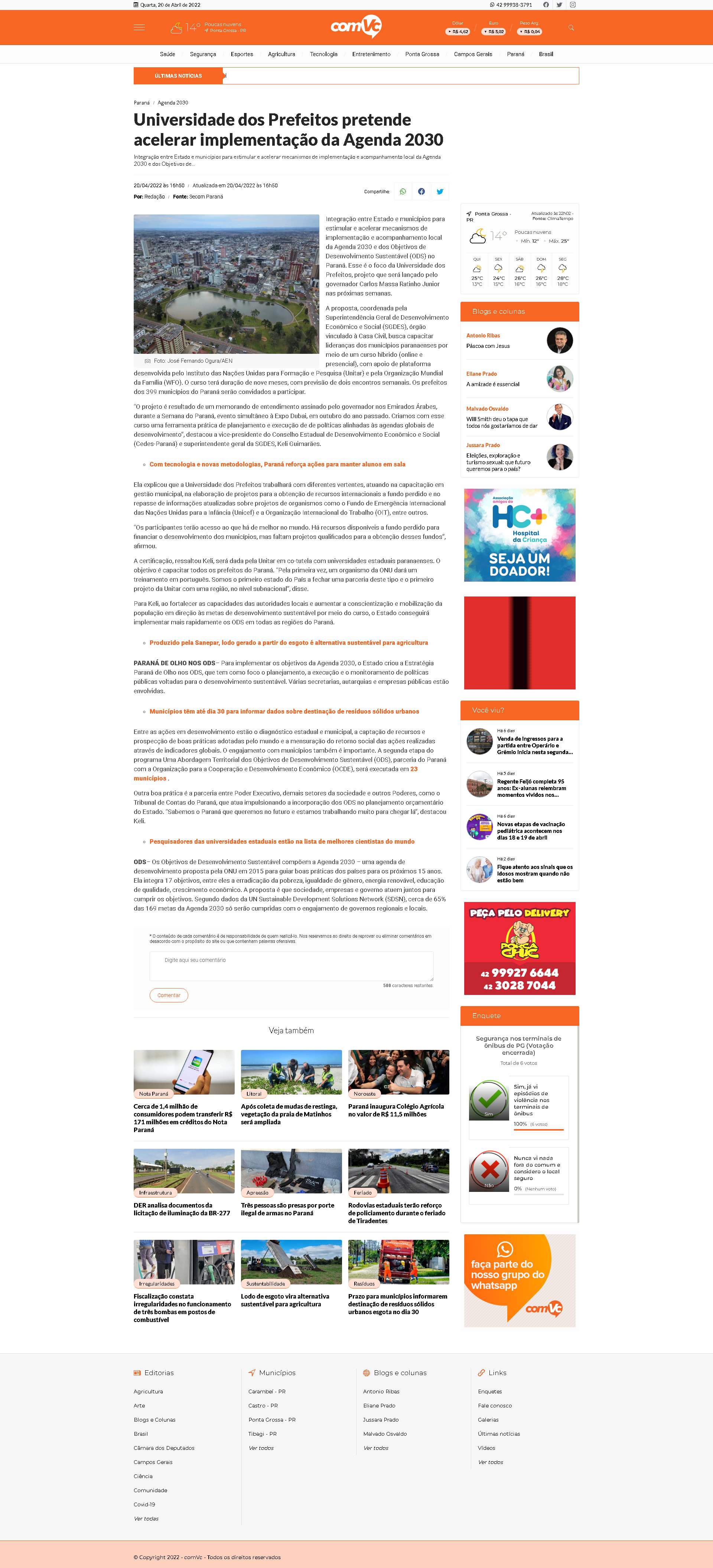 Estado e municípios para estimular e acelerar mecanismos de implementação e acompanhamento local da Agenda 2030 e dos Objetivos de Desenvolvimento Sustentável (ODS) no Paraná. Esse é o foco da Universidade dos Prefeitos, projeto que será lançado pelo