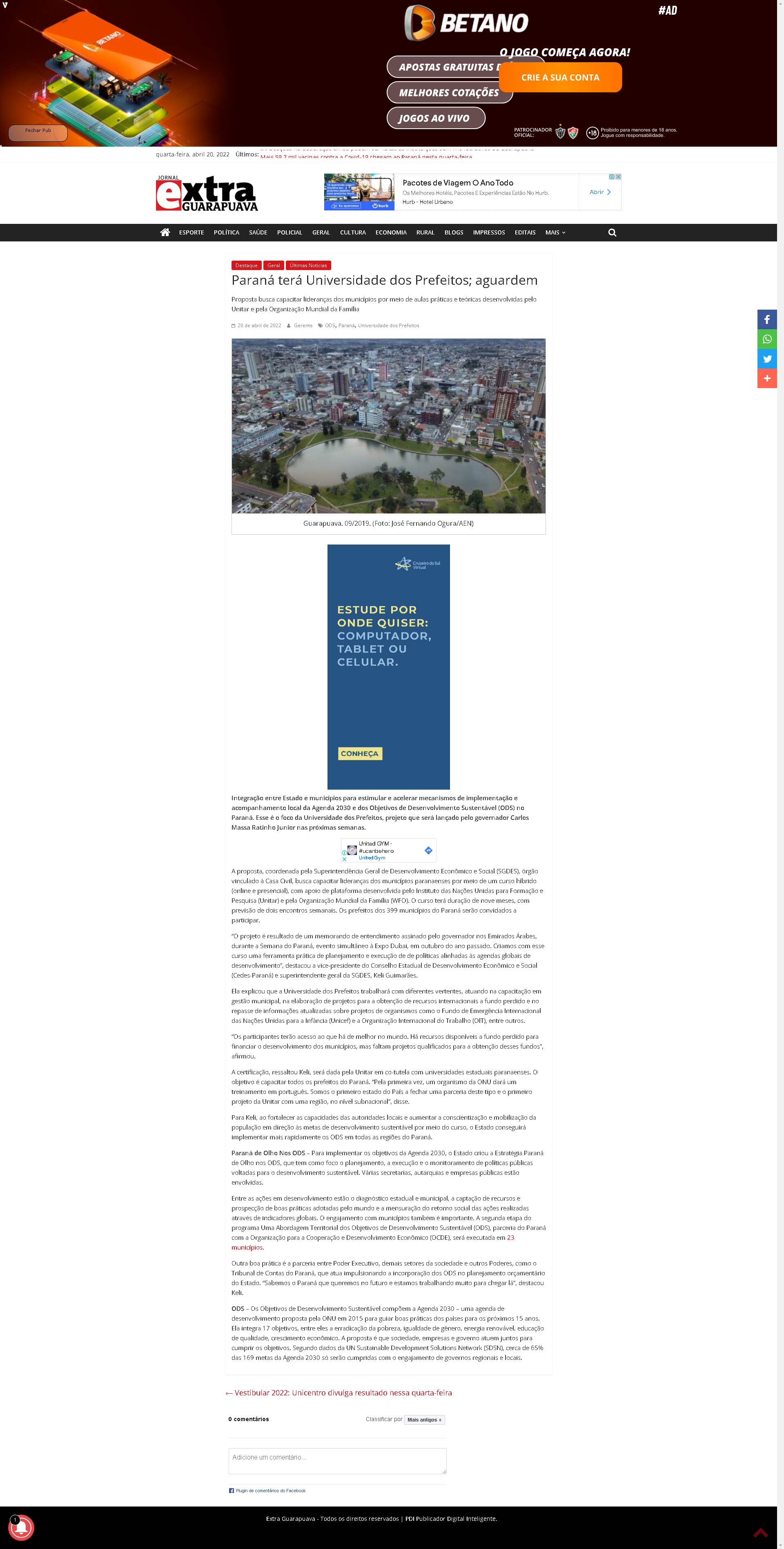 Estado e municípios para estimular e acelerar mecanismos de implementação e acompanhamento local da Agenda 2030 e dos Objetivos de Desenvolvimento Sustentável (ODS) no Paraná. Esse é o foco da Universidade dos Prefeitos, projeto que será lançado pelo