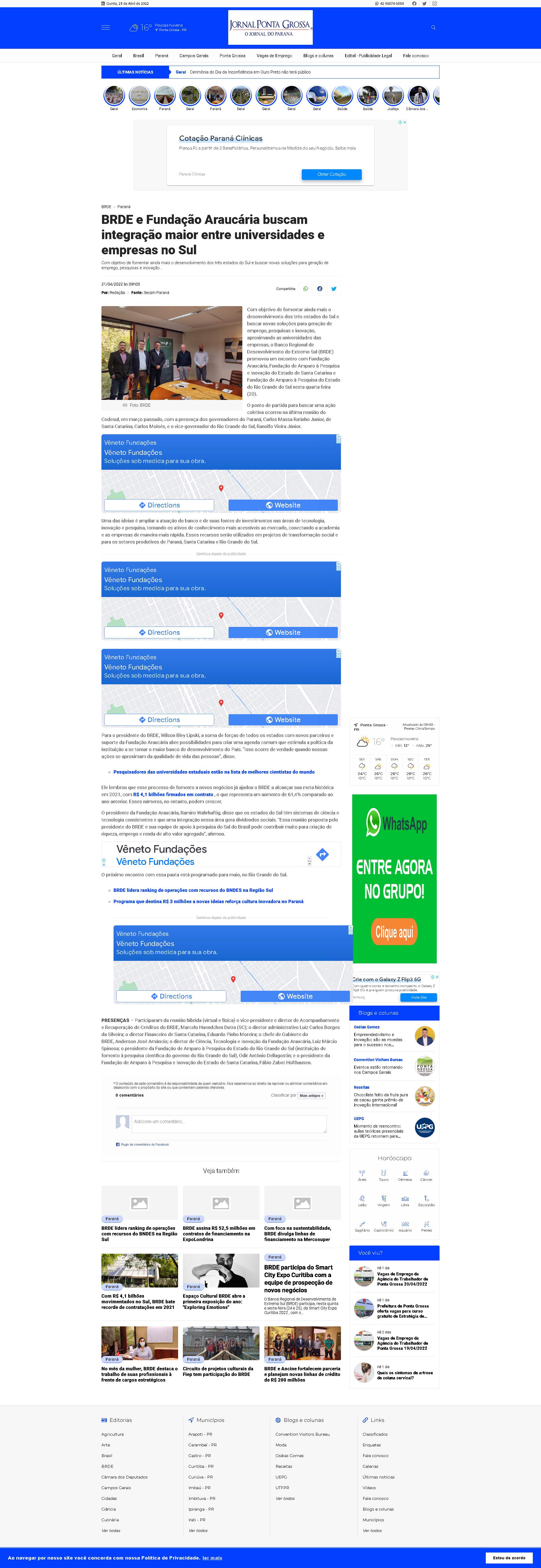 Fundação Araucária, Ramiro Wahrhaftig, disse que os estados do Sul têm sistemas de ciência e tecnologia consistentes e que uma integração nessa área gera dividendos sociais. “Essa reunião proposta pelo presidente do