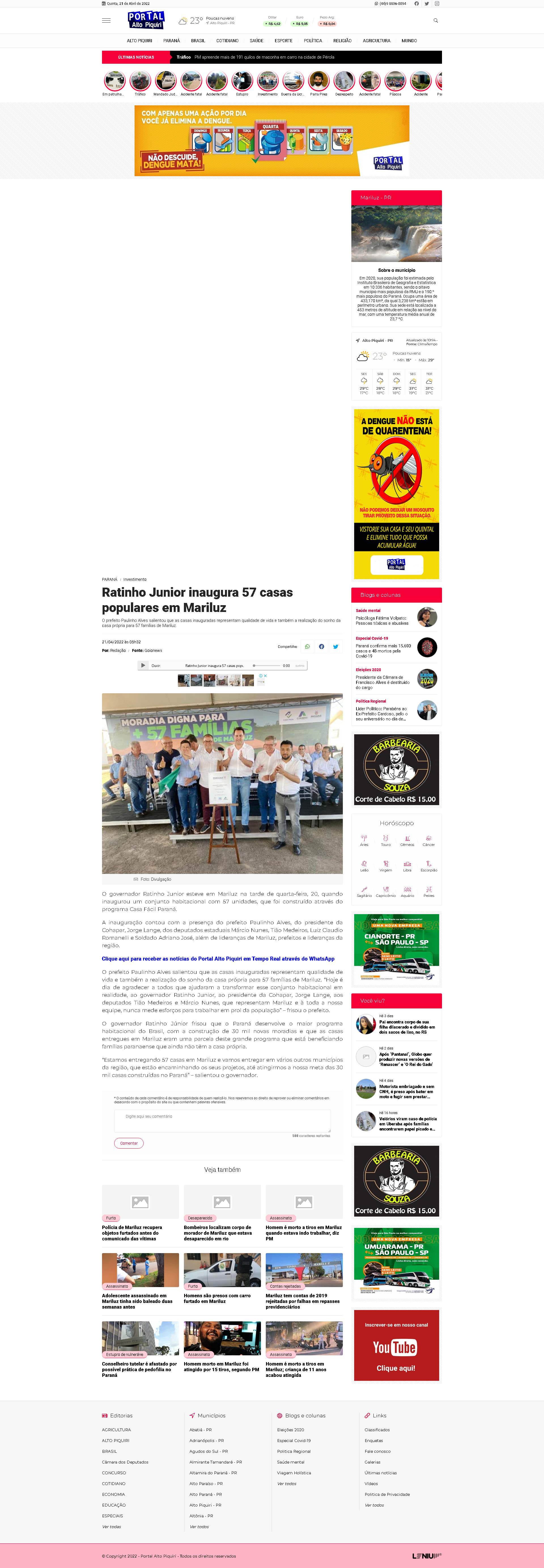 governador Ratinho Junior esteve em Mariluz na tarde de quarta-feira, 20, quando inaugurou um conjunto habitacional com 57 unidades, que foi construído através do programa Casa Fácil