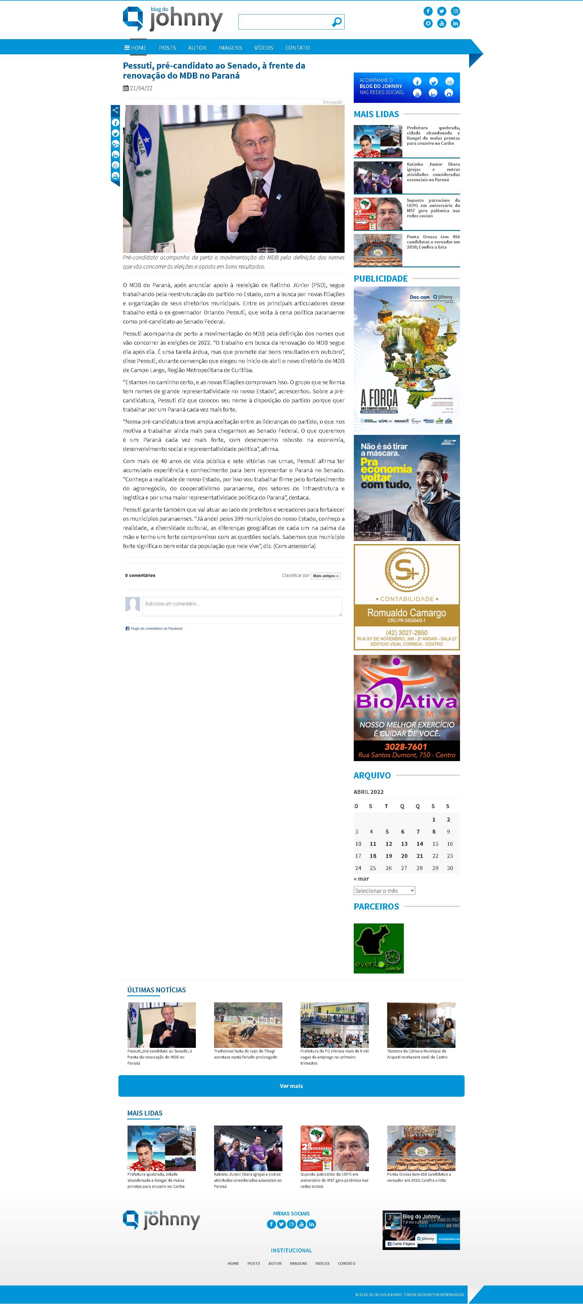 Pessuti acompanha de perto a movimentação do MDB pela definição dos nomes que vão concorrer às eleições de 2022. “O trabalho em busca da renovação do MDB segue dia após dia. É uma tarefa árdua, mas que promete dar bons resultados em outubro”, disse Pessuti, durante convenção que elegeu no início de abril o novo diretório do MDB de Campo Largo, Região Metropolitana de Curitiba.