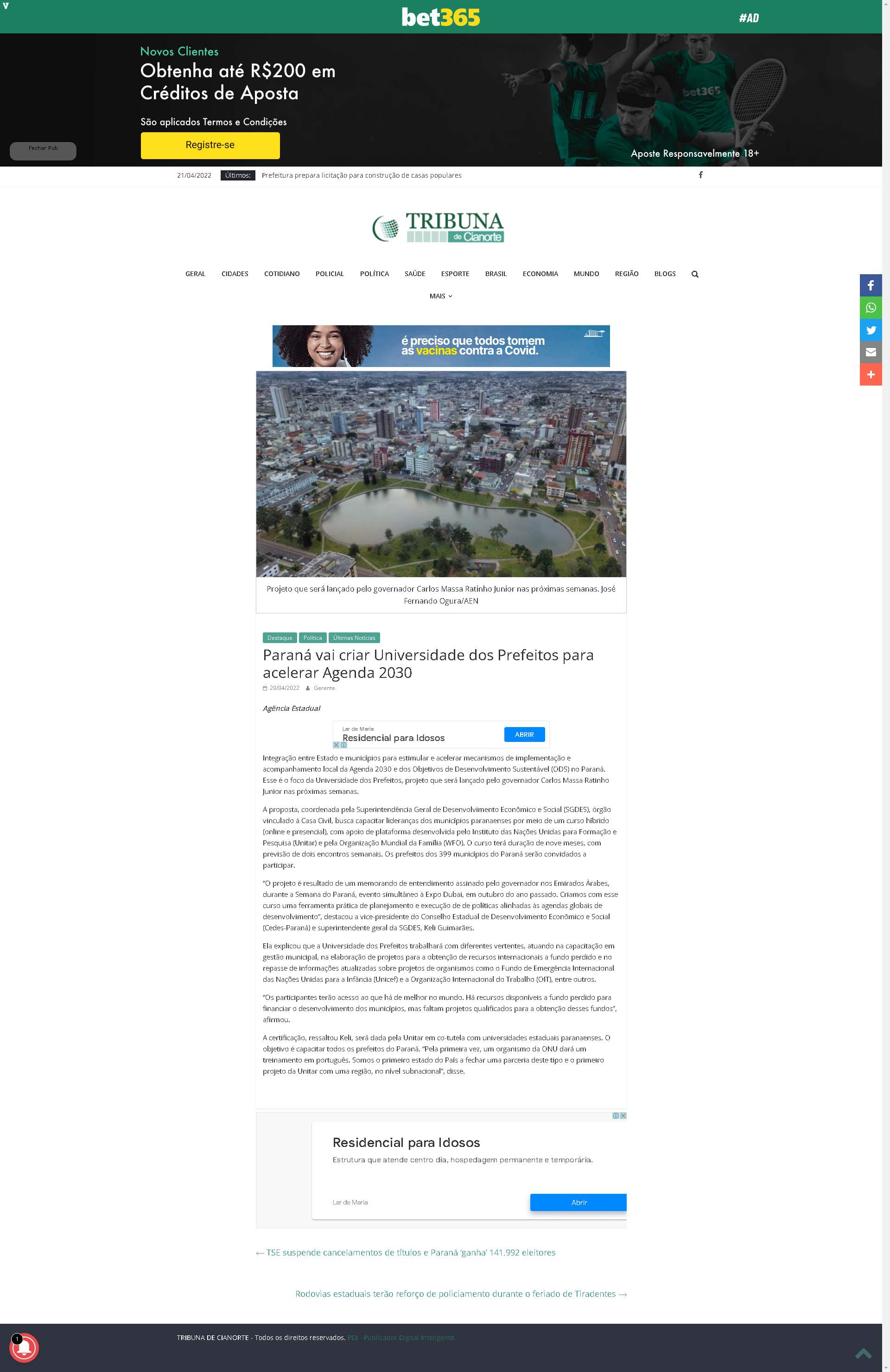 Estado e municípios para estimular e acelerar mecanismos de implementação e acompanhamento local da Agenda 2030 e dos Objetivos de Desenvolvimento Sustentável (ODS) no Paraná. Esse é o foco da Universidade dos Prefeitos, projeto que será lançado pelo