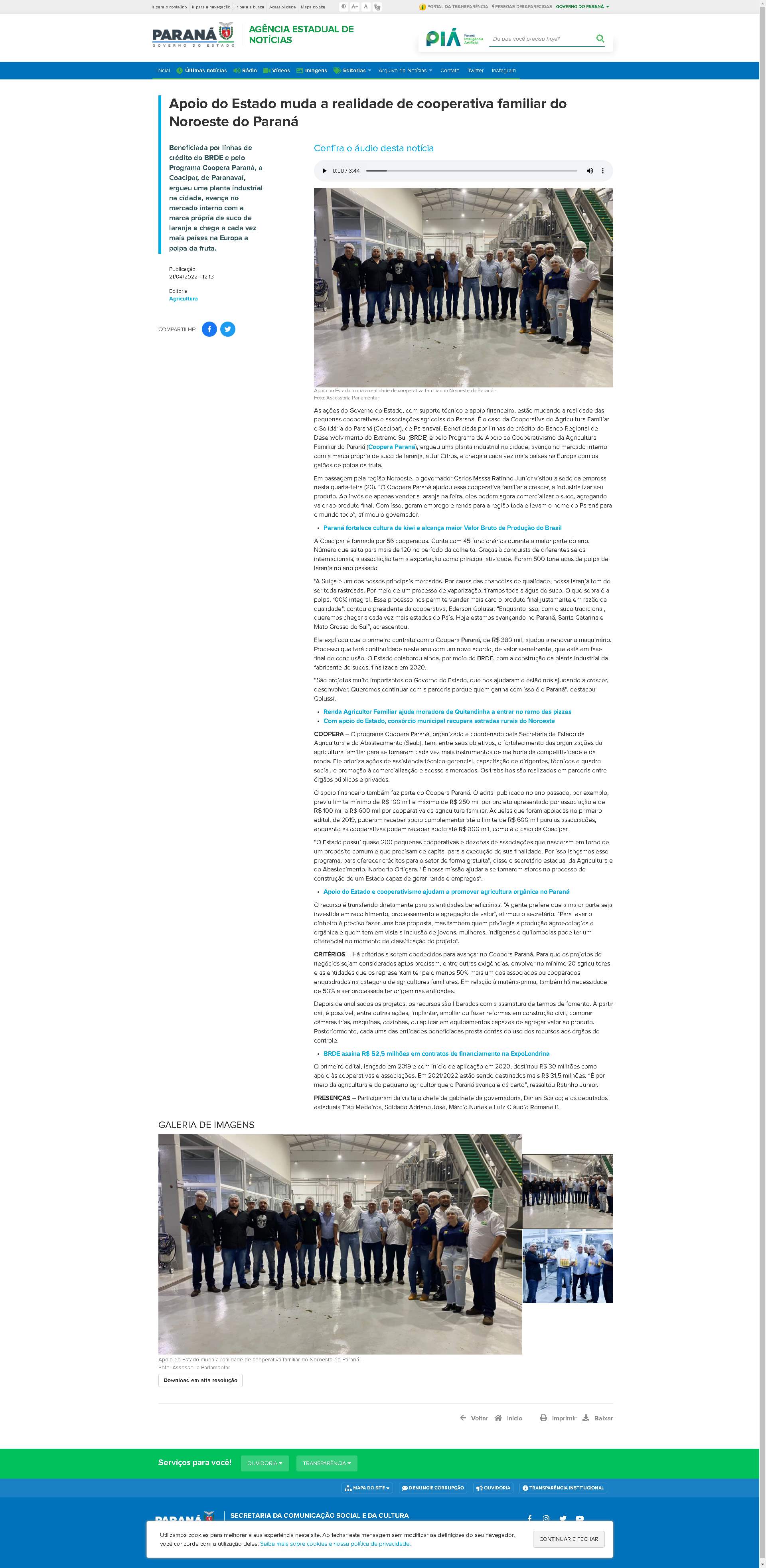Paraná ajudou essa cooperativa familiar a crescer, a industrializar seu produto. Ao invés de apenas vender a laranja na feira, eles podem agora comercializar o suco, agregando valor ao produto final. Com isso, geram emprego e renda para a região toda e levam o nome do