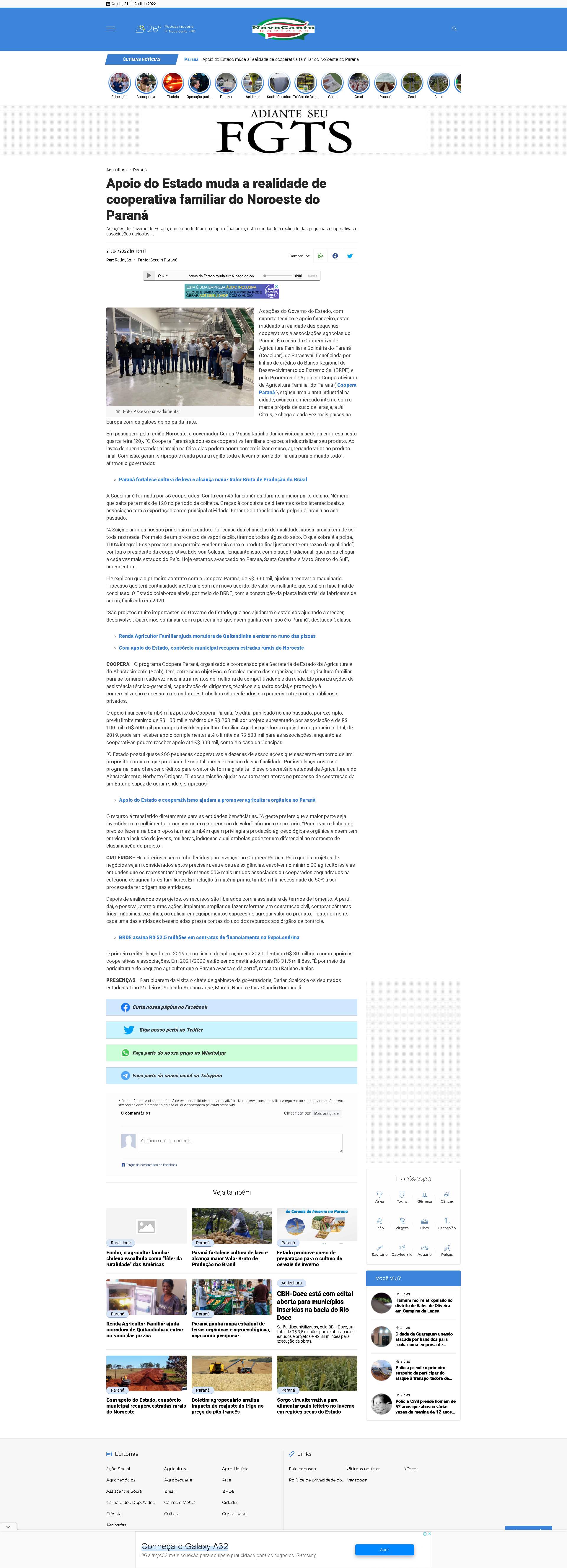 O primeiro edital, lançado em 2019 e com início de aplicação em 2020, destinou R$ 30 milhões como apoio às cooperativas e associações. Em 2021/2022 estão sendo destinados mais R$ 31,5 milhões. “É por meio da agricultura e do pequeno agricultor que o