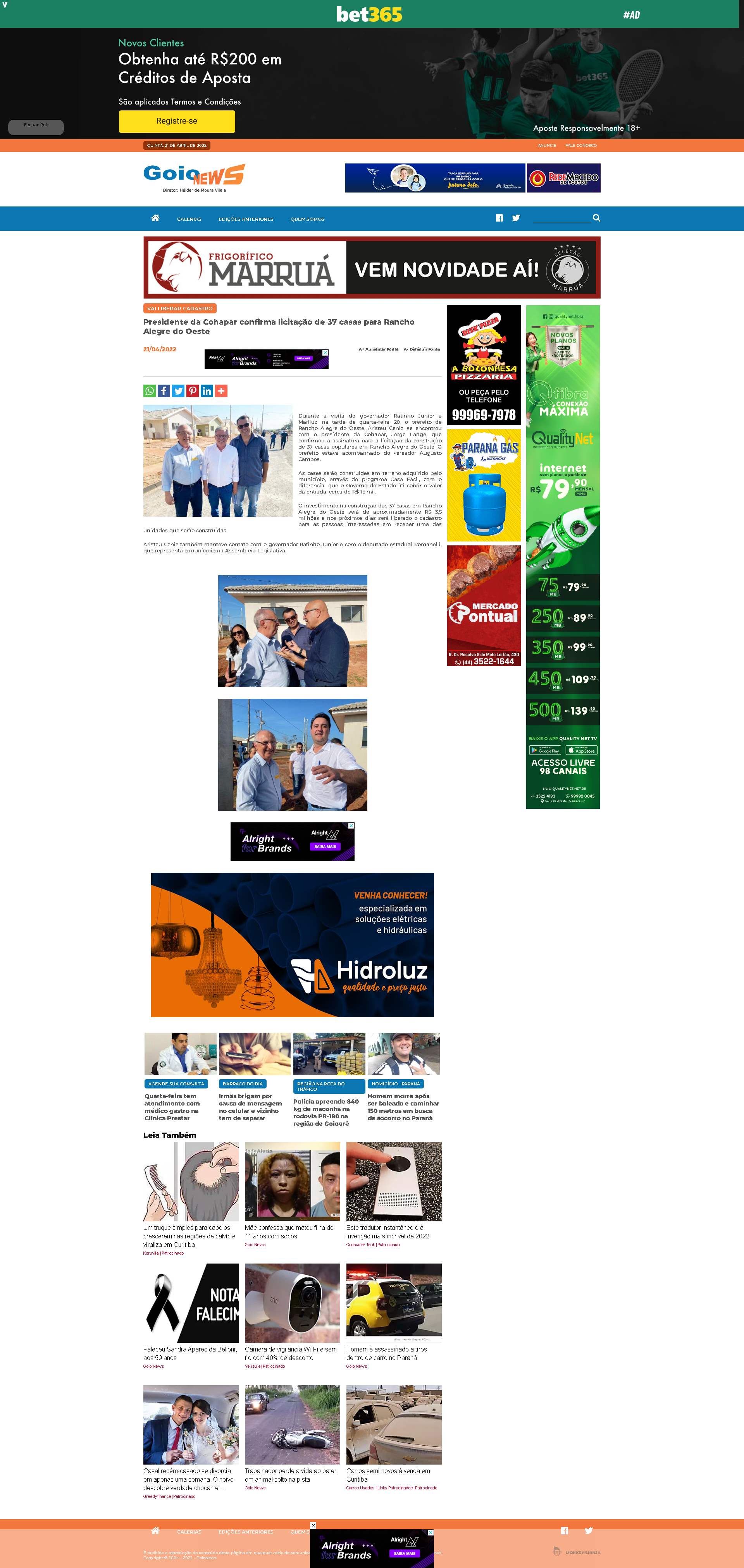 Cohapar, Jorge Lange, que confirmou a assinatura para a licitação da construção de 37 casas populares em Rancho Alegre do Oeste. O