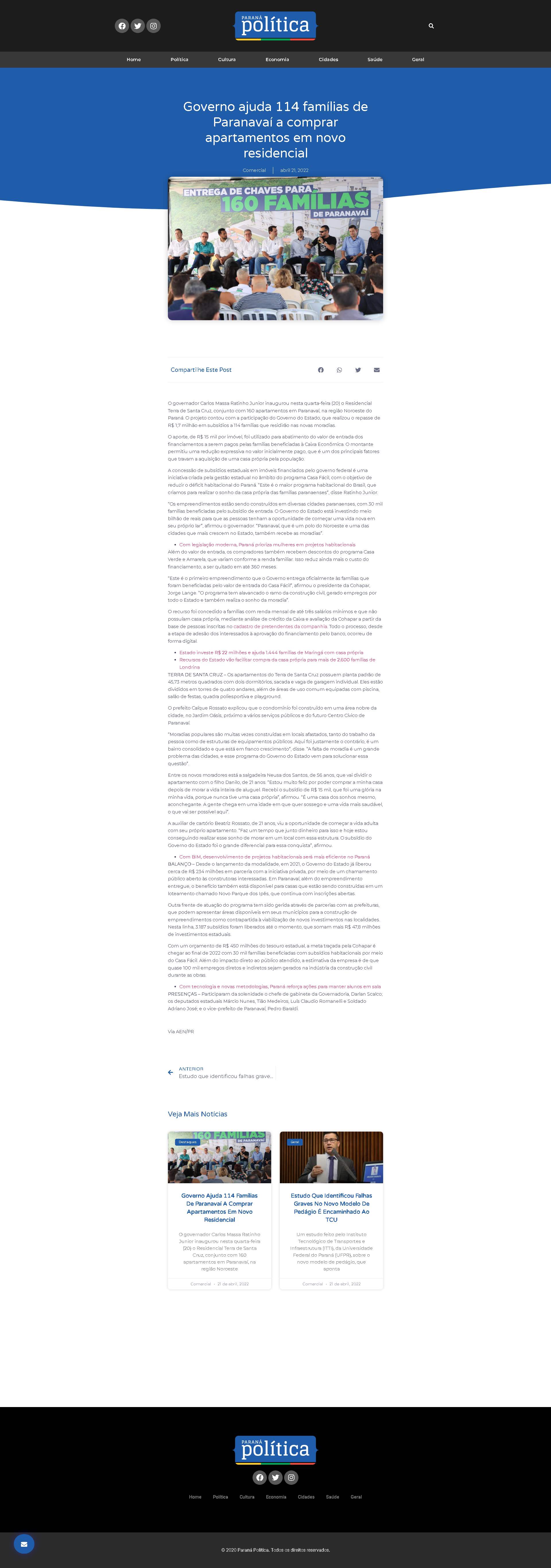 Governo do Estado, que realizou o repasse de R$ 1,7 milhão em subsídios a 114 famílias que residirão nas novas moradias.