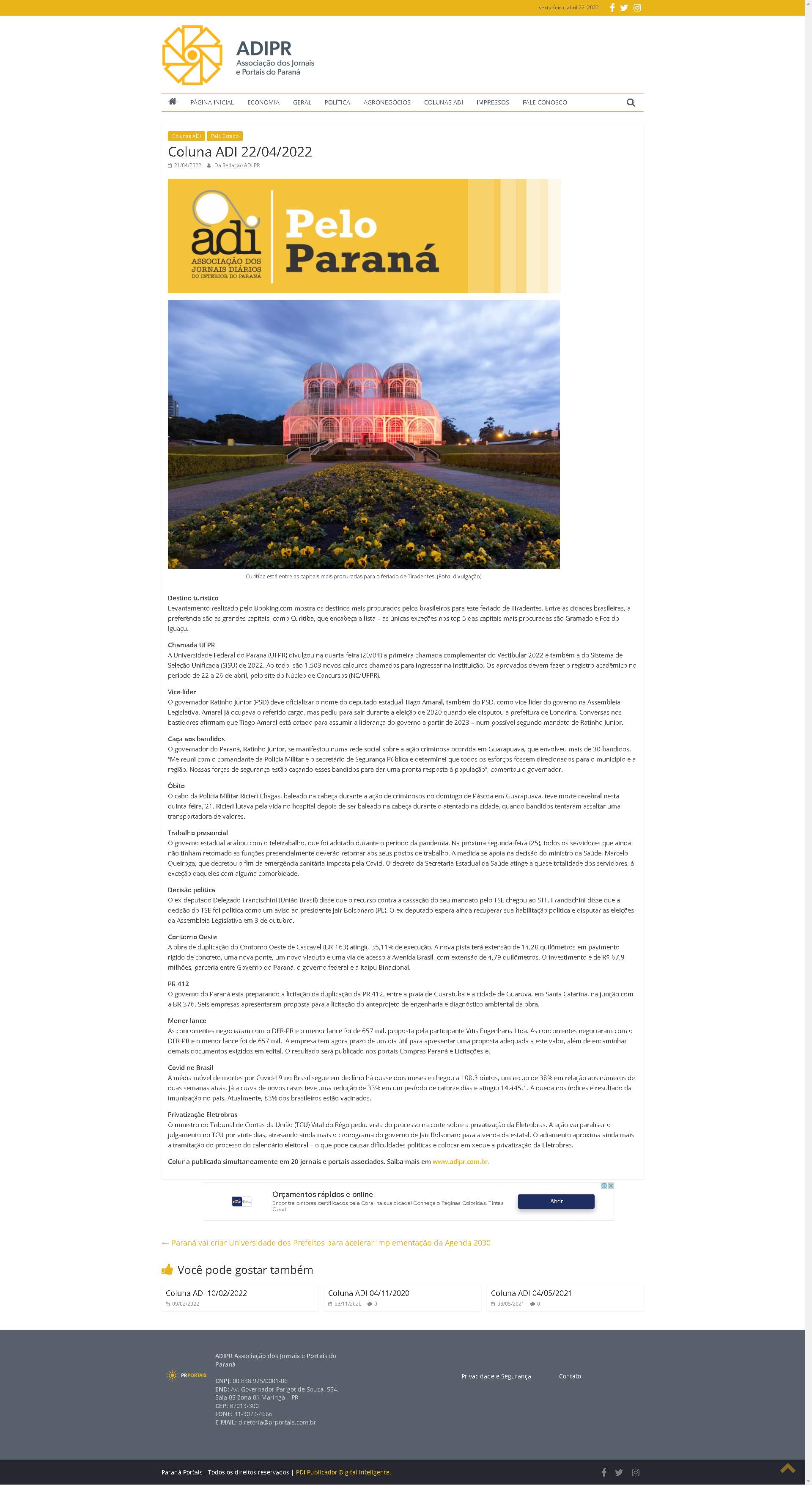 Coluna publicada simultaneamente em 20 jornais e portais associados. Saiba mais em www.adipr.com.br.