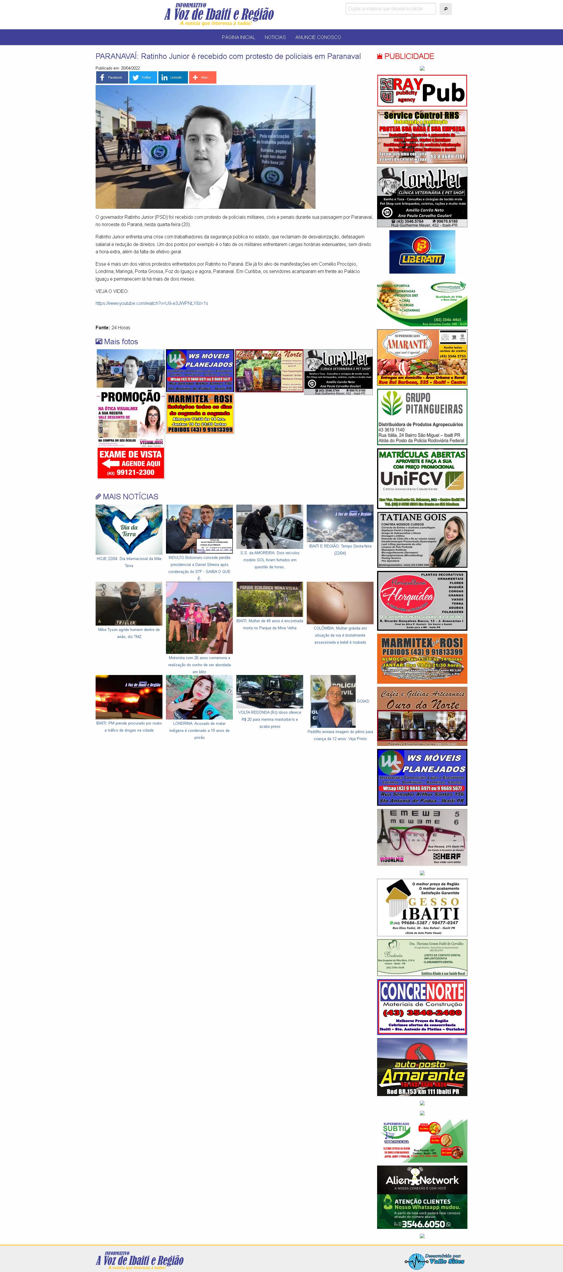 Ratinho Junior é recebido com protesto de policiais em Paranavaí Publicado em: 20/04/2022 O