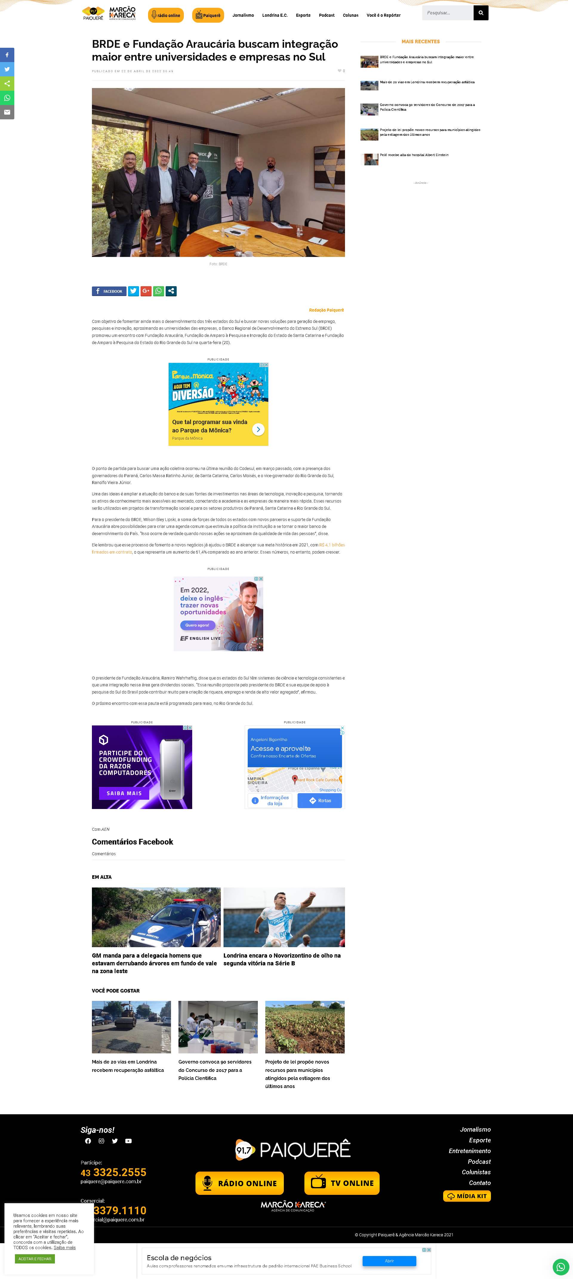 BRDE e sua equipe de apoio à pesquisa do Sul do Brasil pode contribuir muito para criação de riqueza, emprego e renda de alto valor agregado”, afirmou.