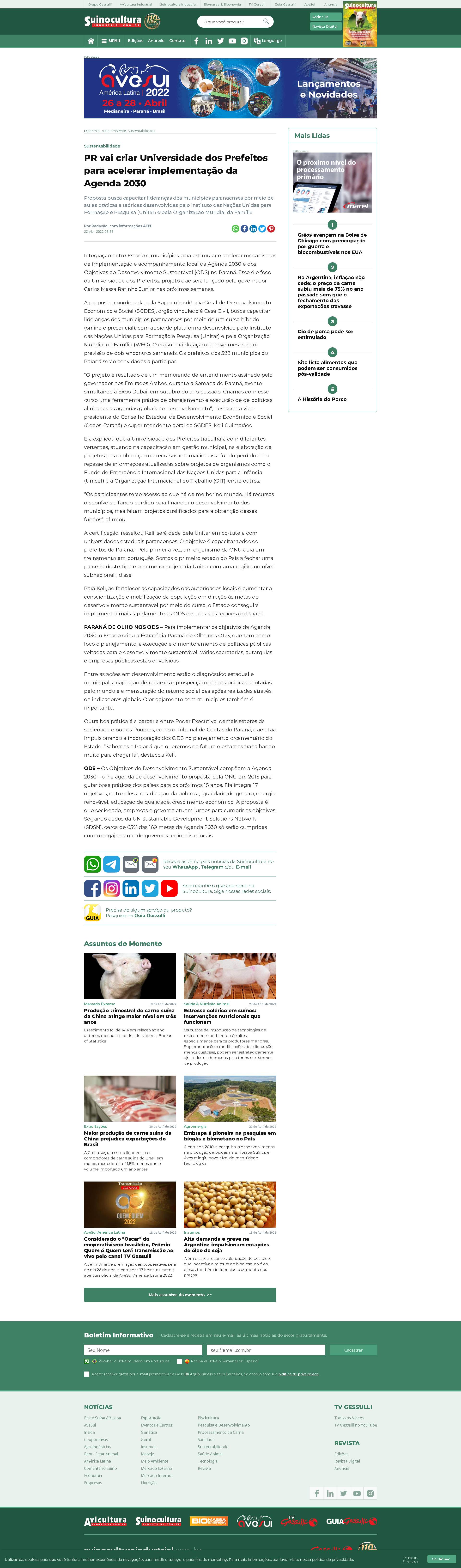 A cerimônia de premiação das cooperativas será no dia 26 de abril a partir das 17 horas, durante a abertura oficial da AveSui América Latina 2022