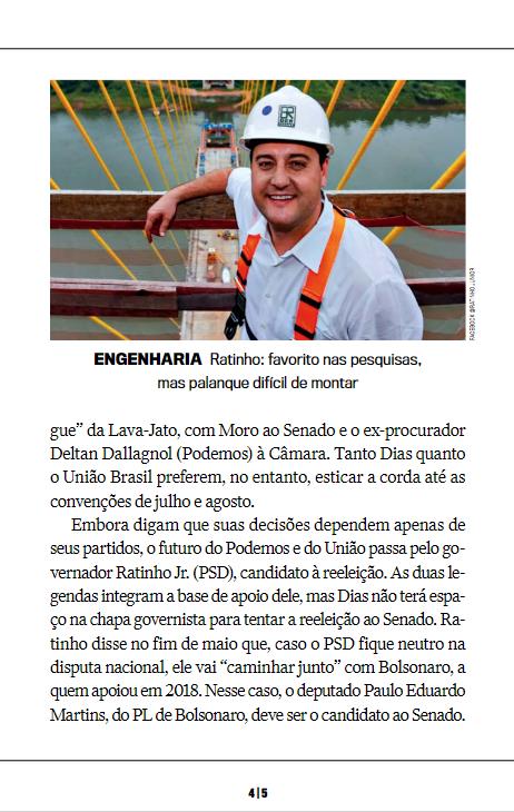 Senado. Ra- tinho disse no fim de maio que, caso o PSD fique neutro na disputa nacional, ele vai “caminhar junto” com