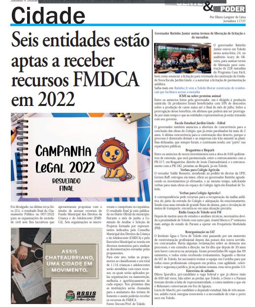 O vereador Valdir Rossetto, atendendo ao pedido do diretor da UPD, Gerson Boff, entregou em mãos, ofício ao governador Ratinho agradecendo os investimentos já efetuados, e ao mesmo tempo, solicitando verbas para mais obras no espaço do Colégio Agrícola Estadual de Toledo. Verbas para Colégio Agrícola I A correspondência pede recursos para a recuperação da malha asfáltica do pátio da entrada do Colégio e adequação do estacionamento. Sendo essa uma entrada de grande fluxo de alunos, pais e circulação de meios de transporte, encontra-se em uma situação precária.