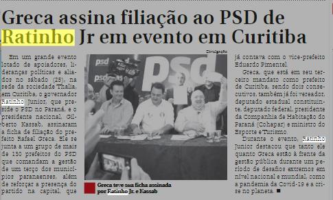 Greca assina filiação ao PSD de Ratinho Jr em evento em Curitiba