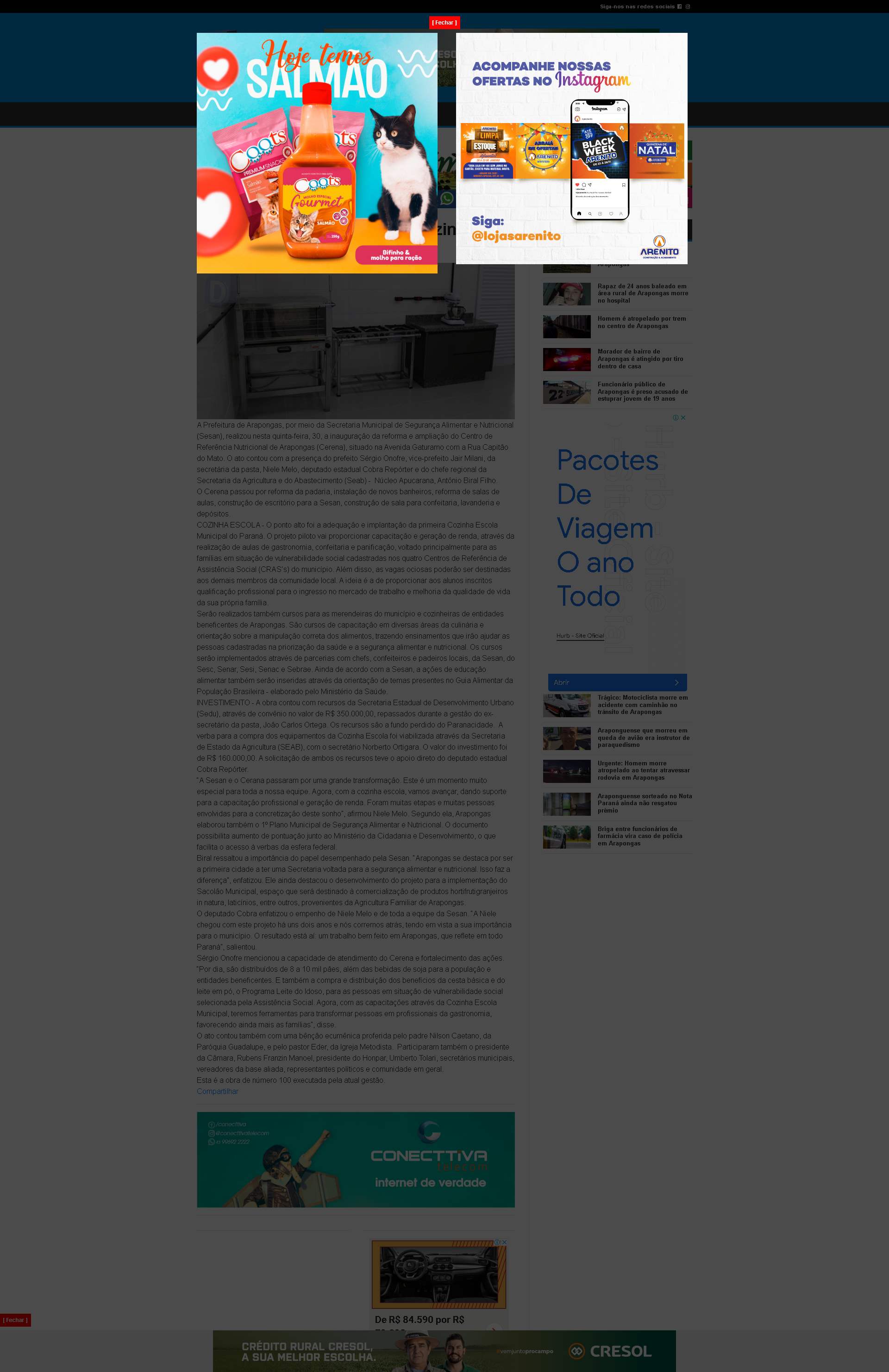 A Prefeitura de Arapongas, por meio da Secretaria Municipal de Segurança Alimentar e Nutricional (Sesan), realizou nesta quinta-feira, 30, a inauguração da reforma e ampliação do Centro de Referência Nutricional de Arapongas (Cerena), situado na Avenida Gaturamo com a Rua Capitão do Mato. O ato contou com a presença do prefeito Sérgio Onofre, vice-prefeito Jair Milani, da secretária da pasta, Niele Melo, deputado estadual Cobra Repórter e do chefe regional da Secretaria da Agricultura e do Abastecimento (Seab) - Núcleo Apucarana, Antônio Biral Filho.