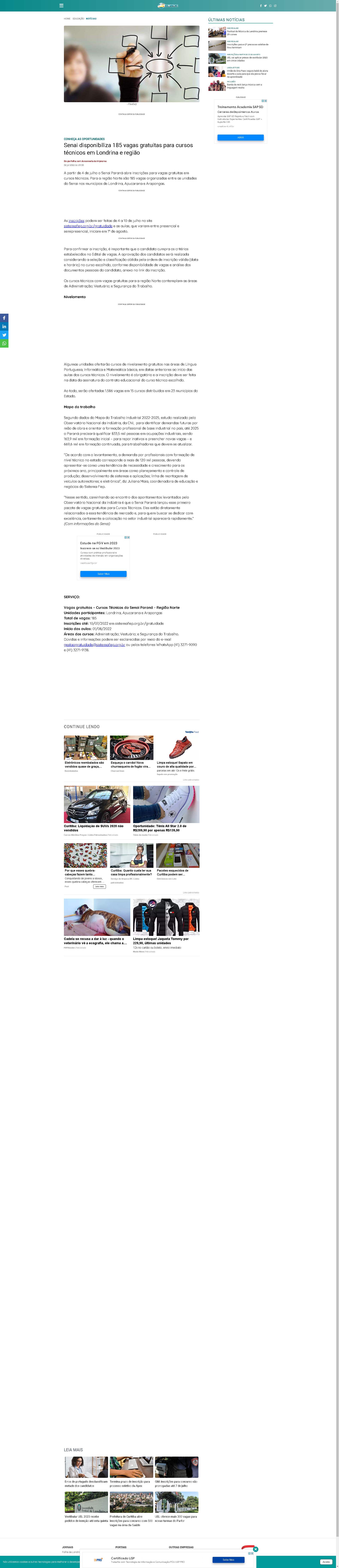 Senai Paraná lançou esse primeiro pacote de vagas gratuitas para Cursos Técnicos. Eles estão diretamente relacionados a essa tendência de mercado e, para quem buscar se dedicar com excelência, certamente a colocação no setor industrial aparecerá rapidamente.” (Com informações do