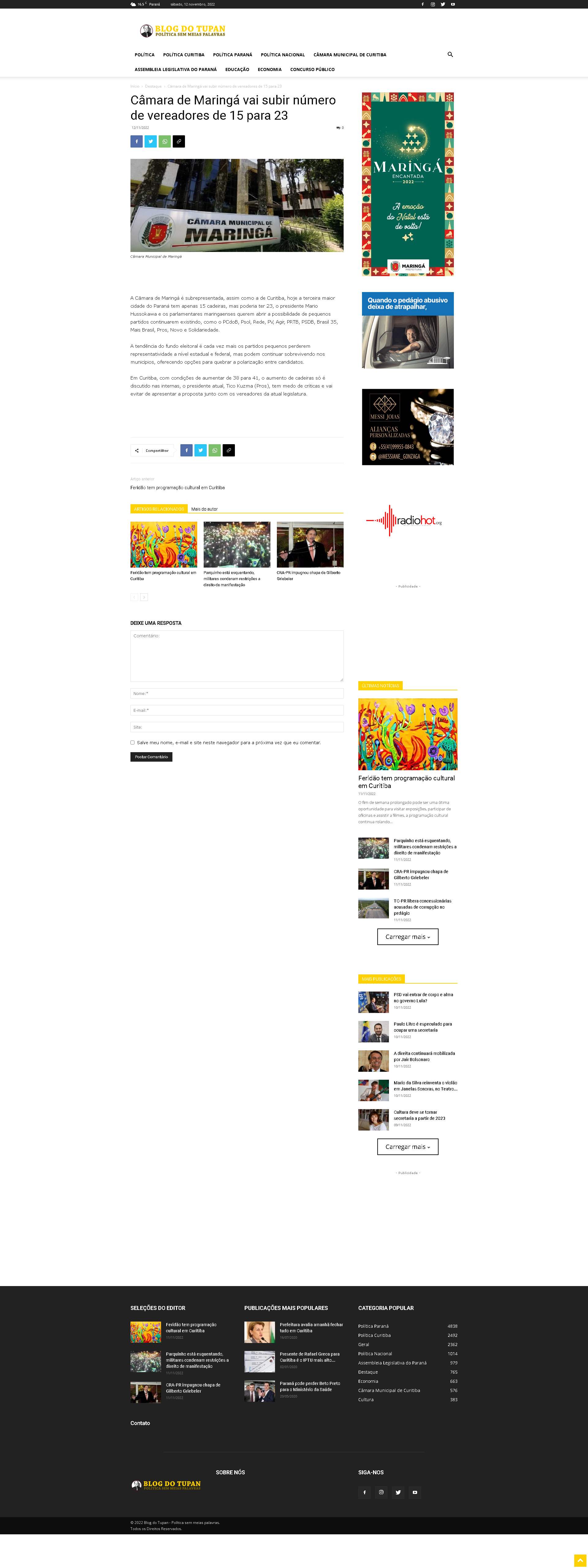 A Câmara de Maringá é subrepresentada, assim como a de Curitiba, hoje a terceira maior cidade do Paraná tem apenas 15 cadeiras, mas poderia ter 23, o presidente Mario Hussokawa e os parlamentares maringaenses querem abrir a possibilidade de pequenos partidos continuarem existindo, como o PCdoB, Psol, Rede, PV, Agir, PRTB, PSDB, Brasil 35, Mais Brasil, Pros, Novo e Solidariedade.