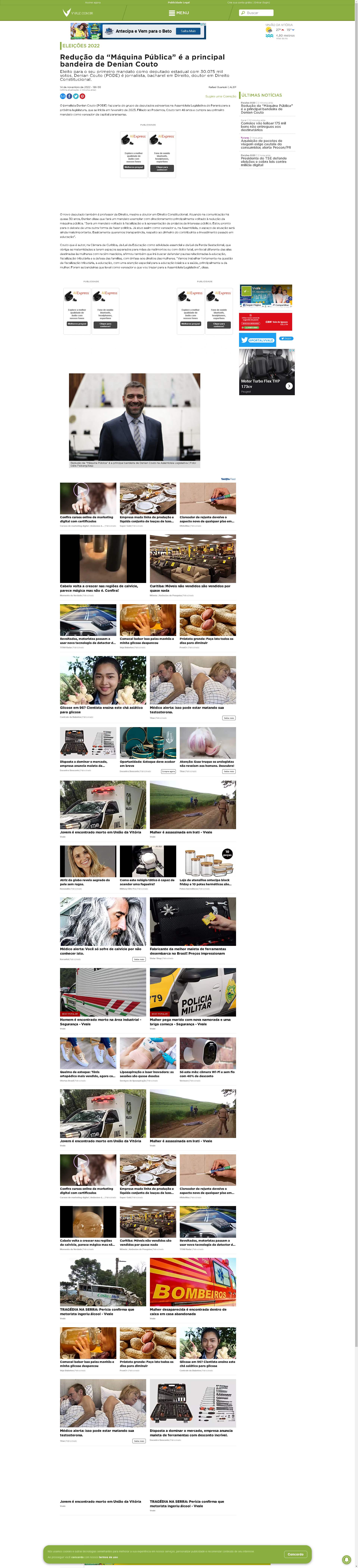 O jornalista Denian Couto (PODE) faz parte do grupo de deputados estreantes na Assembleia Legislativa do Paraná para a próxima legislatura, que se inicia em fevereiro de 2023. Filiado ao Podemos, Couto tem 48 anos e cumpre seu primeiro mandato como