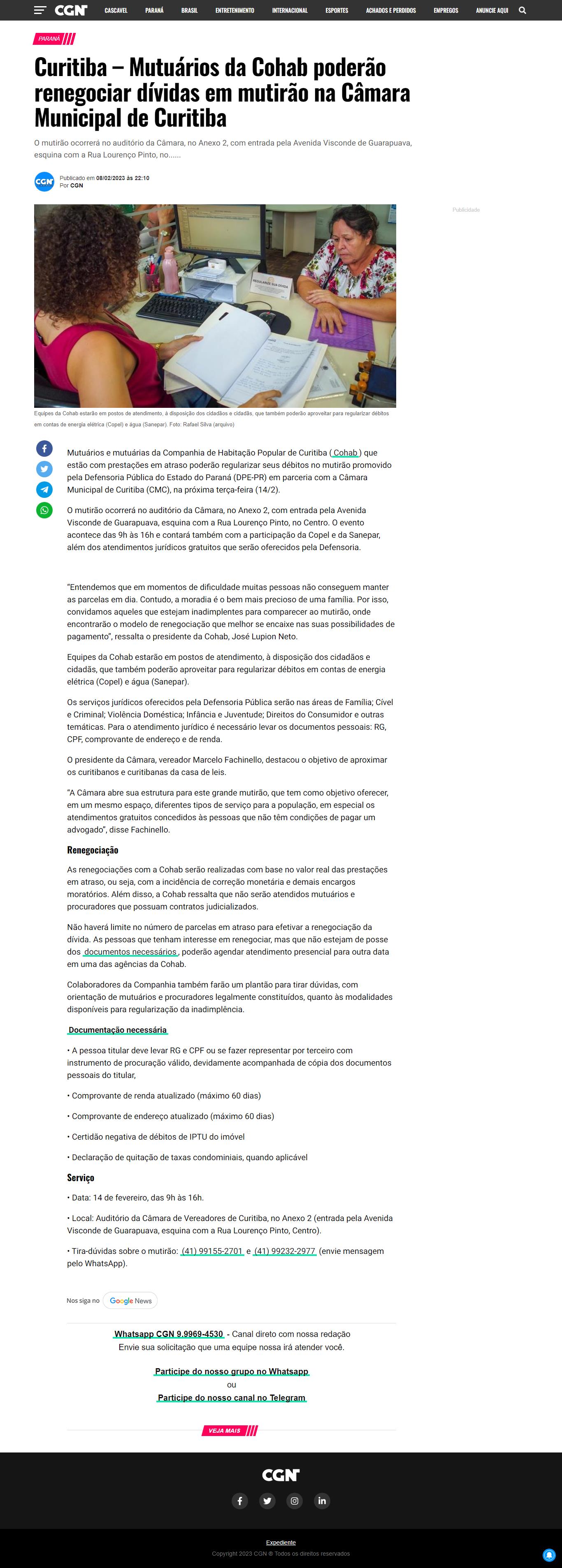 • Tira-dúvidas sobre o mutirão: (41) 99155-2701 e (41) 99232-2977 (envie mensagem pelo WhatsApp).