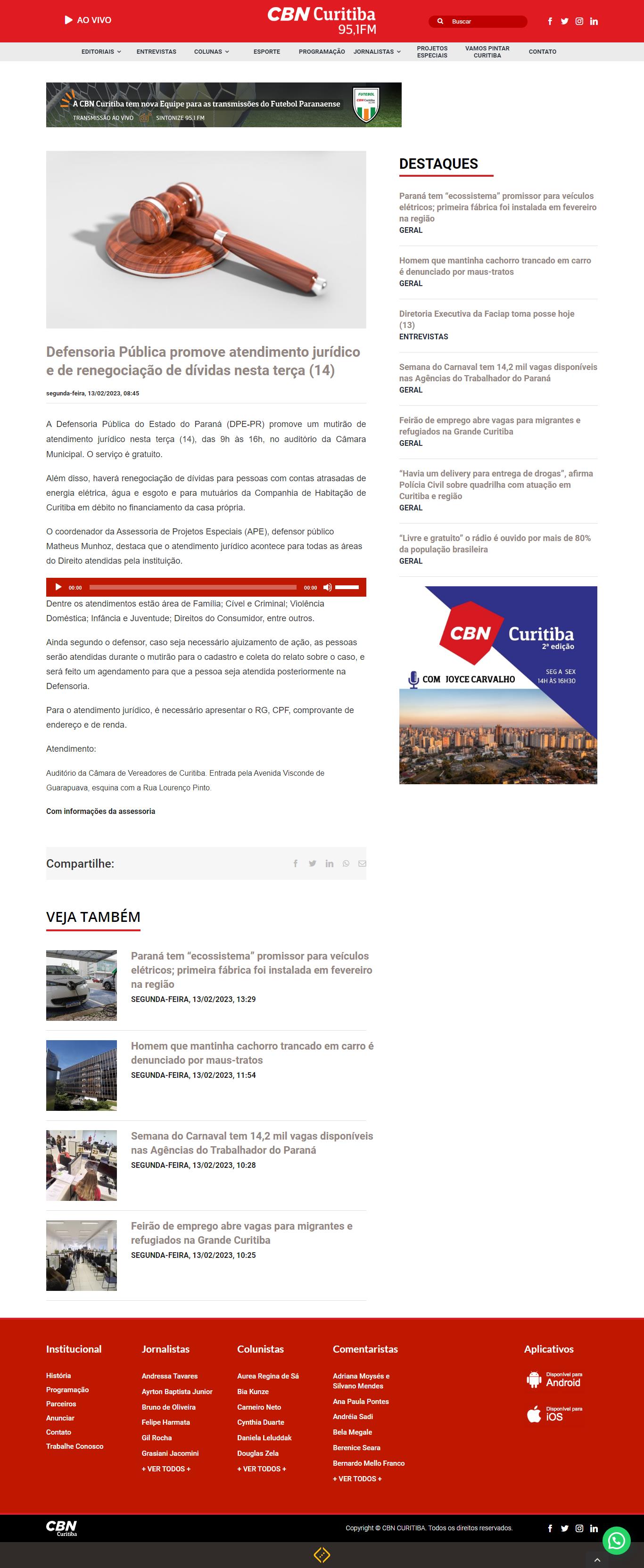 A Defensoria Pública do Estado do Paraná (DPE-PR) promove um mutirão de atendimento jurídico nesta terça (14), das 9h às 16h, no auditório da