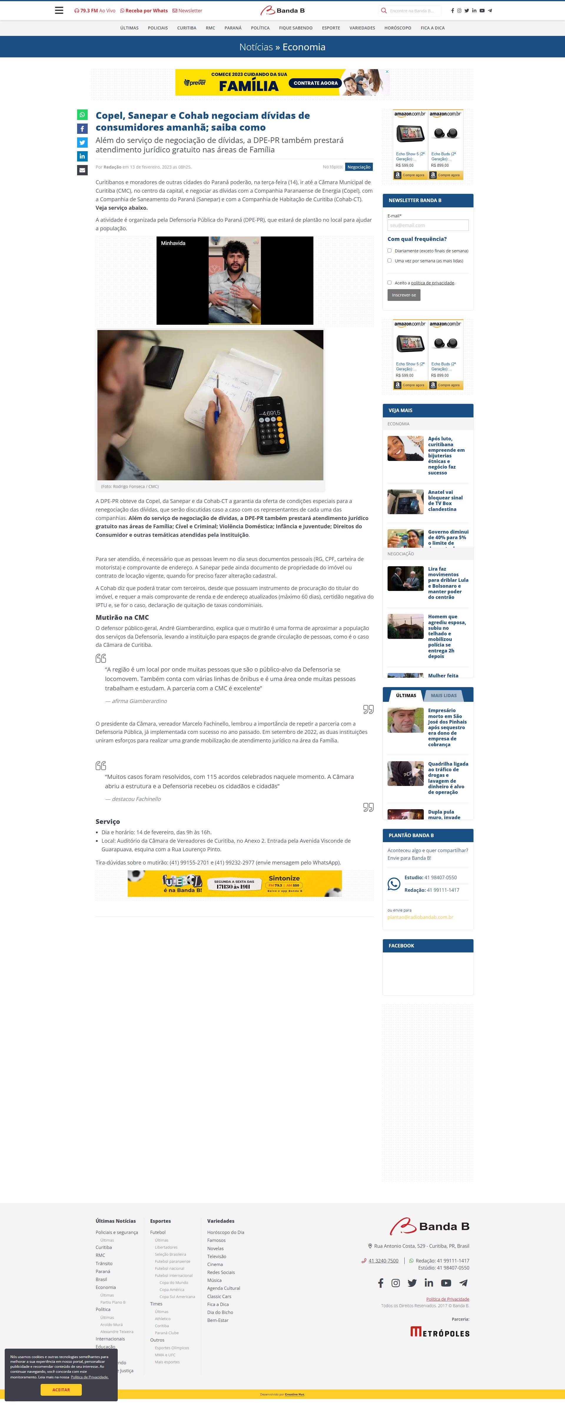 Câmara Municipal de Curitiba (CMC), no centro da capital, e negociar as dívidas com a Companhia Paranaense de Energia (Copel), com a Companhia de Saneamento do Paraná (Sanepar) e com a Companhia de Habitação de